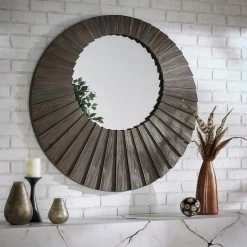 Best Pirce 🧨 Xavier Dark Brown Reclaimed Wood Round Seashell Wall Mirror By INSPIRE Q Modern Small ✨