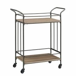 Deals ๐ Palacios Bronze Finish And Wood Straight Lines Bar Cart By INSPIRE Q Modern ๐งจ