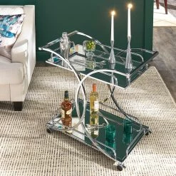 Coupon ๐ฏ Rosewood Chrome Bar Cart With Curving Metal Frame By INSPIRE Q Bold ๐