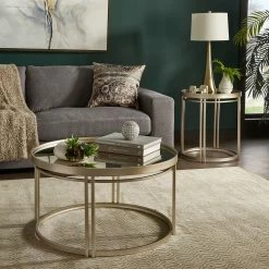 Wholesale โค๏ธ Dale Champagne Silver Finish Antique Mirror Top Table Set By INSPIRE Q Modern ๐