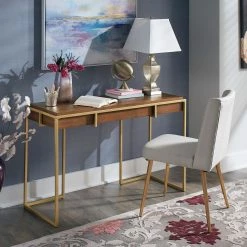 Best reviews of 🔔 Cooke Natural Finish Gold Metal 1-Drawer Desk By INSPIRE Q Modern 🔥