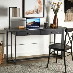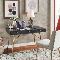 Best Sale 🤩 Cheyenne Black Finish Writing Desk With Gold Metal Base By INSPIRE Q Modern 💯