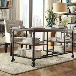 Promo ⭐ Kenton X Base Wood Accent Campaign Writing Desk INSPIRE Q Modern Green Meadow 💯