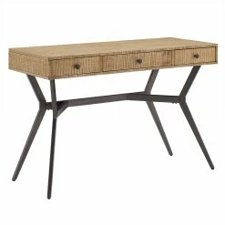 Hot Sale 👏 Calem Light Pine Finish Writing Desk With Black Metal Base By INSPIRE Q Modern ⌛