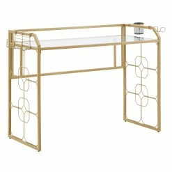 Deals ⭐ Elle Octagon Pattern Gold Metal And Glass Desk By INSPIRE Q Bold 🥰