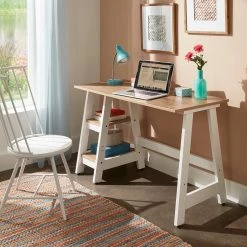 Hot Sale 👏 Kelsey 47″ W Two-tone Sawhorse Reversible Desk By INSPIRE Q Classic White 😉