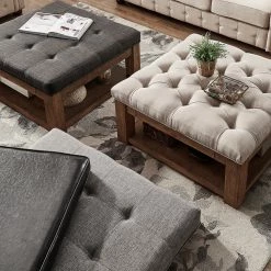 Deals 👍 Lennon Pine Storage Ottoman Coffee Table By INSPIRE Q Artisan Grey Linen – Button Tufts 🤩