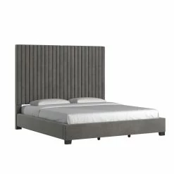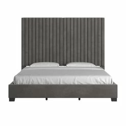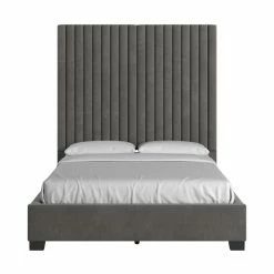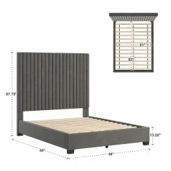 Create the perfect bedroom retreat with this velvet tufted platform bed. The contemporary design is elegantly adorned with a dark grey velvet tufting, which is channeled to create a unique and eye-catching look that screams sophistication. The solid rubberwood frame is made from eco-friendly materials and requires no box spring or additional foundation for support. The foam filling upholstered headboard provides extra comfort when lounging in bed, while the low-profile frame ensures that your head remains high above the mattress surface. This bed features center support legs for stability and a sturdy wood frame that sits on top of four solid wood legs.