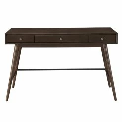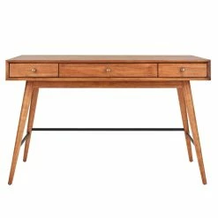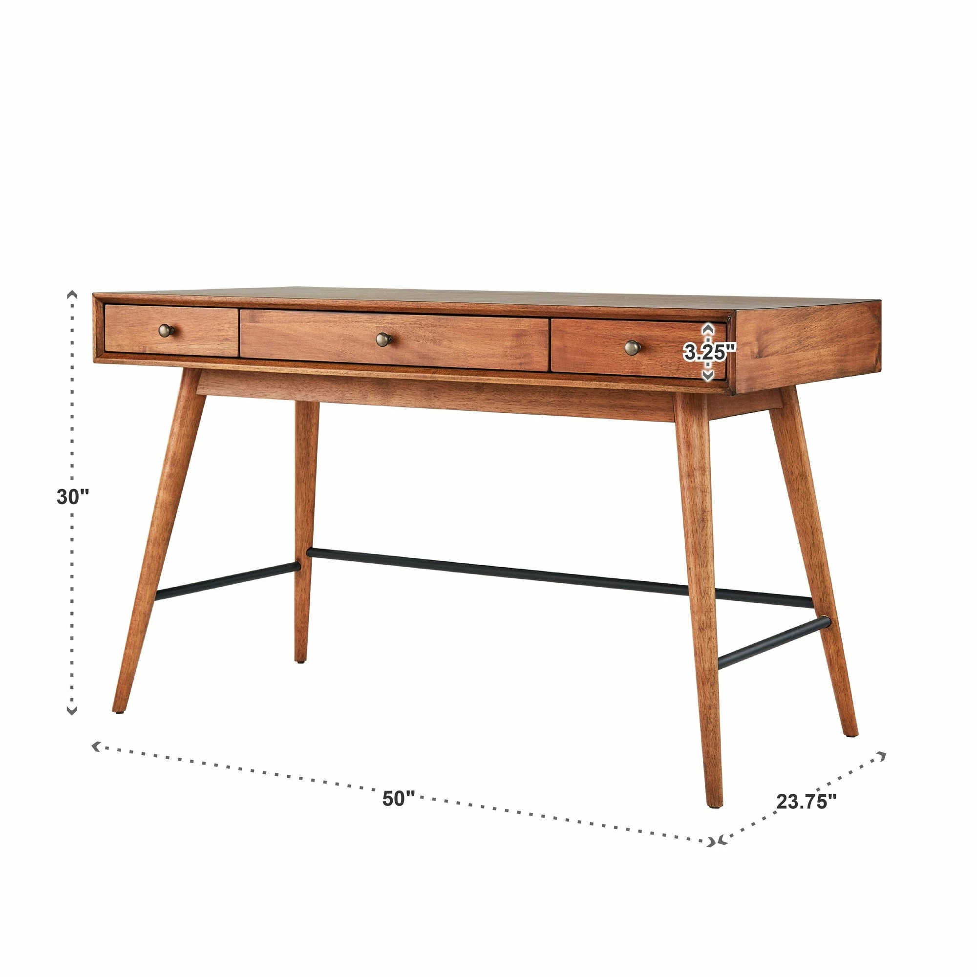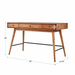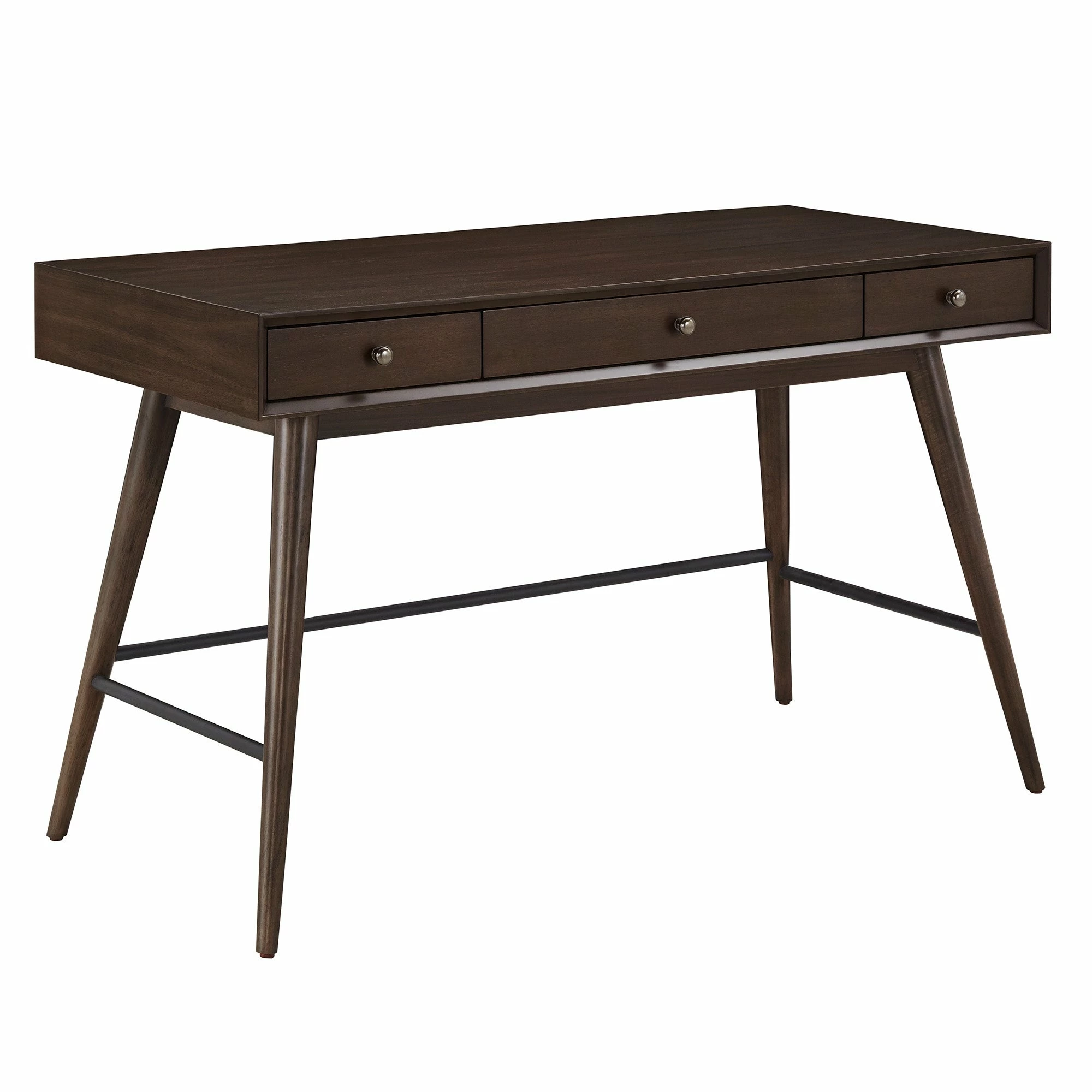 Customize your workspace with the mid-century modern Aksel desk by iNSPIRE Q Modern. The brown wood frame features tapered legs, metal supports, and three drawers on metal glides. Pair this piece with your favorite chair for a unique look and custom comfort.