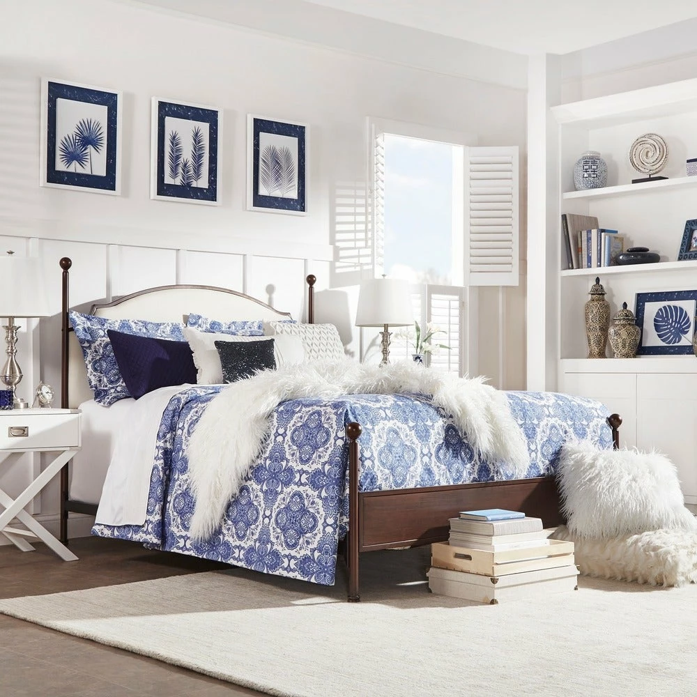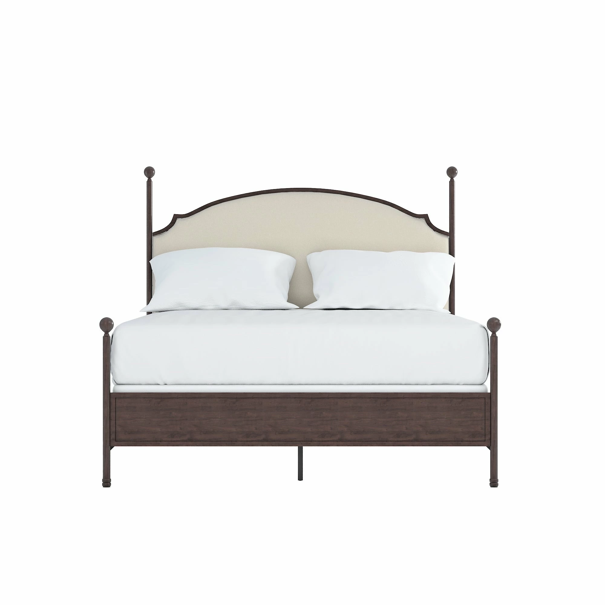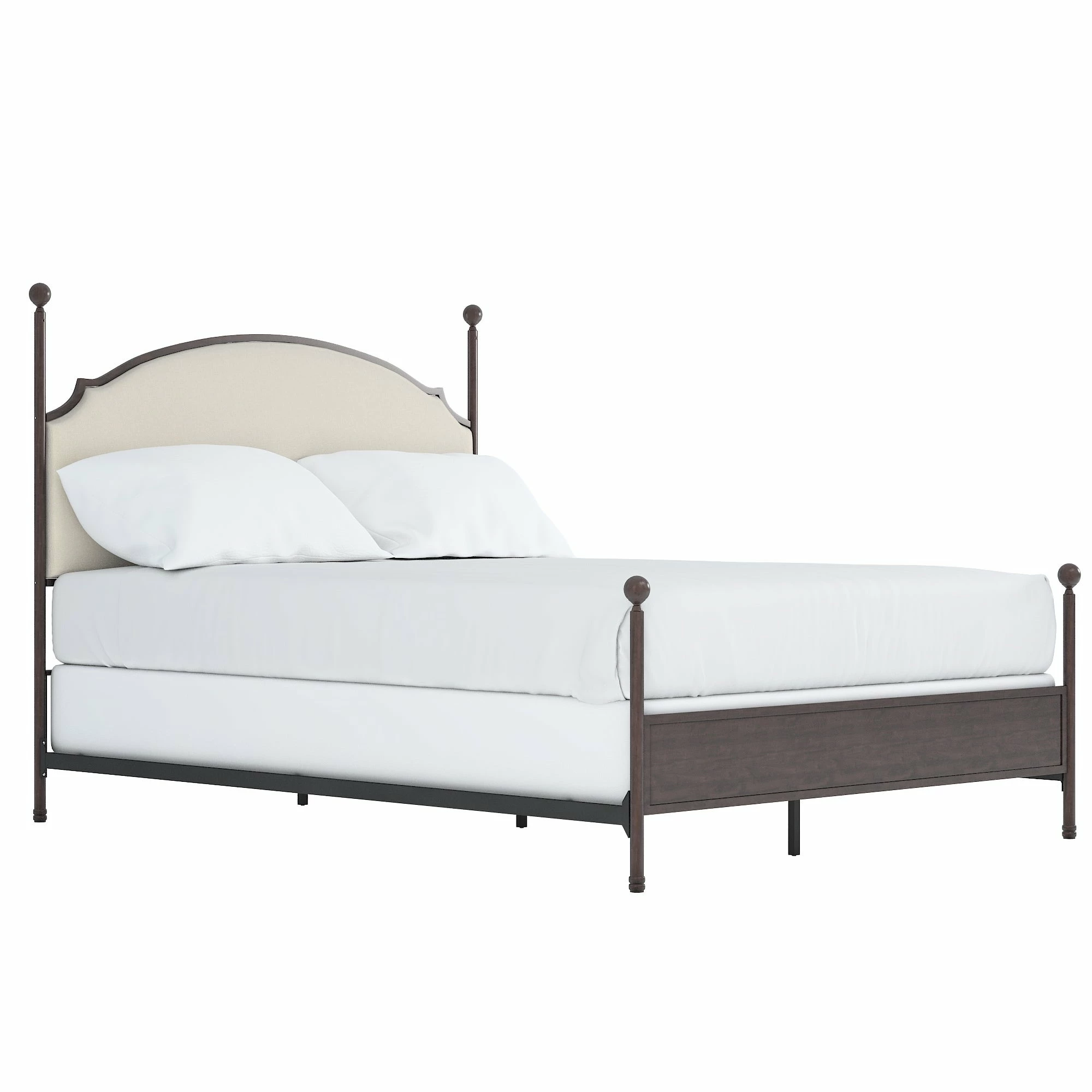 Classically elegant with a charming, minimalist tone, this poster bed from iNSPIRE Q® is a romantic addition to any bedroom. The bed’s headboard is gently curved and upholstered in rich cream-colored linen, creating an understated focal point for your room’s decor. The footboard echoes the headboard’s classic style but doesn’t protrude over the mattress, making this metal poster bed ideal for taller people.