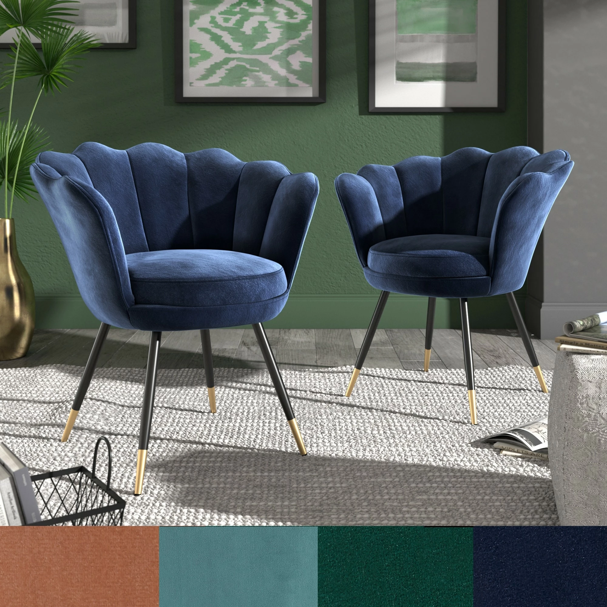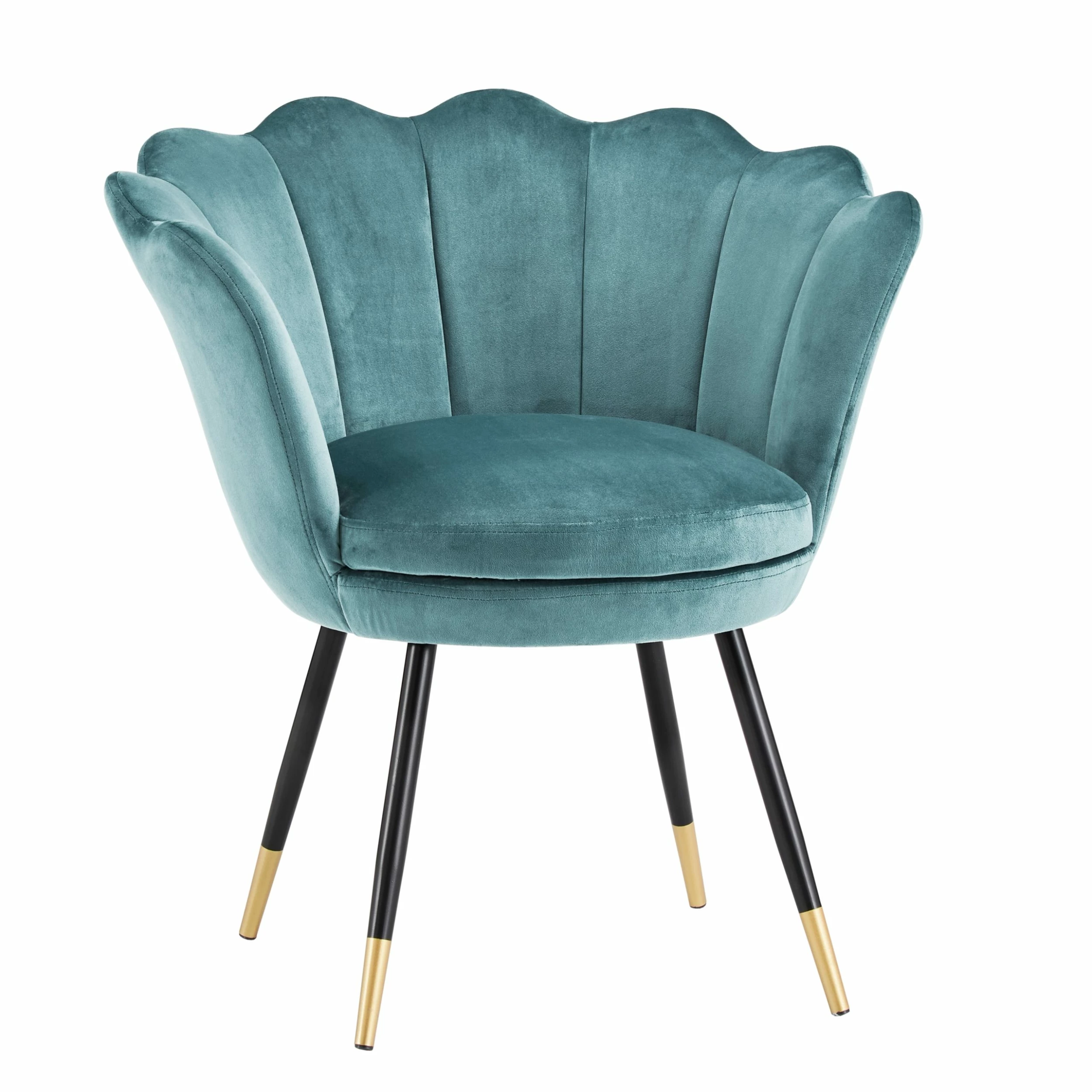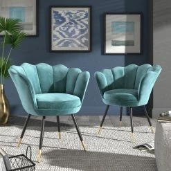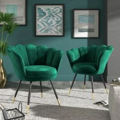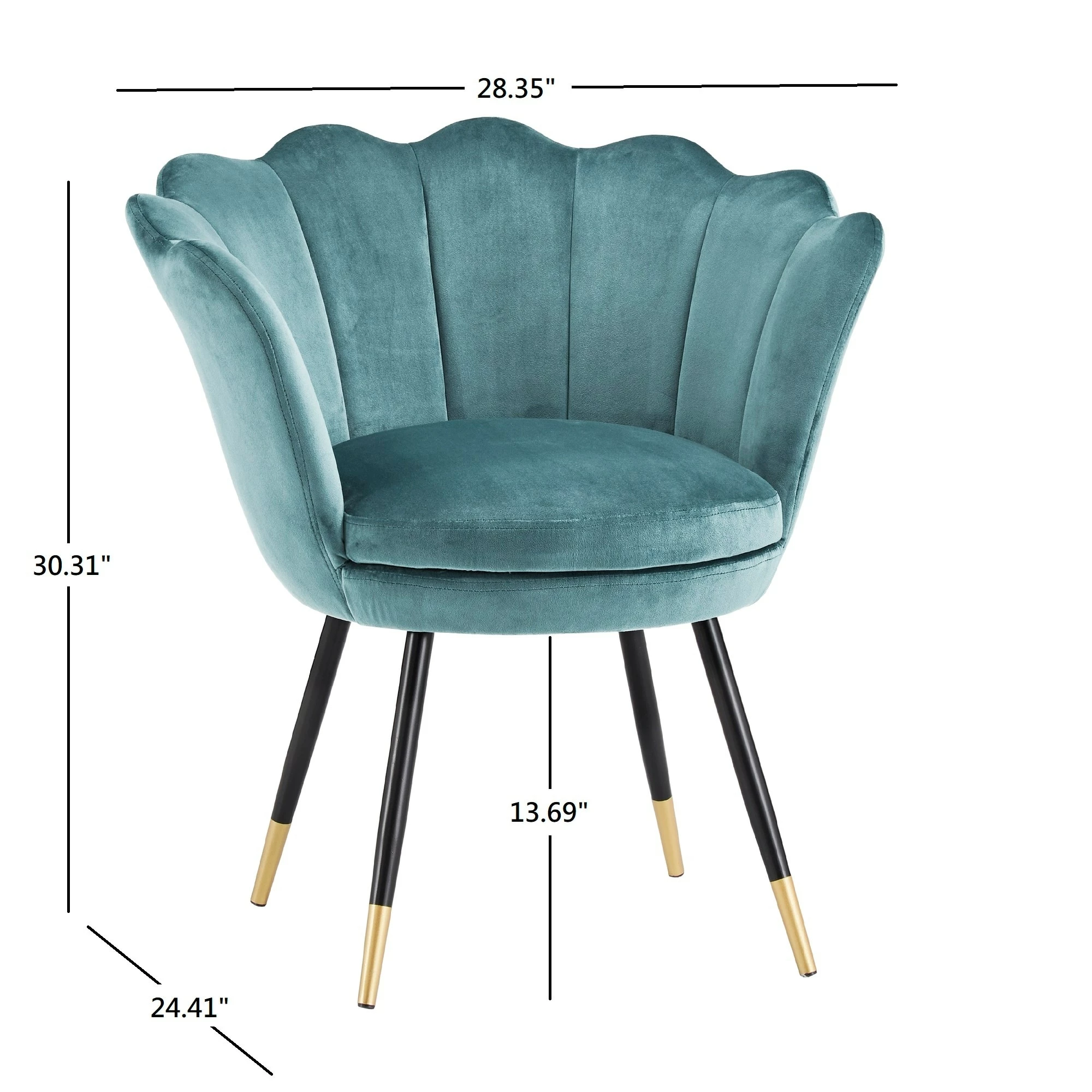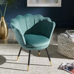 The Angela Black and Gold Metal Leg Velvet Seashell Accent Chair from iNSPIRE Q Bold will have you sitting pretty in your home. This chic chair has many eye-catching features such as the graceful, seashell-shaped back, rich velvet upholstery, and stunning gold-tipped legs. Plush cushioning makes this chair as comfortable as it is stylish. A sturdy plywood and metal construction promises years of use and multiple color options are available to best suit your glamorous style.