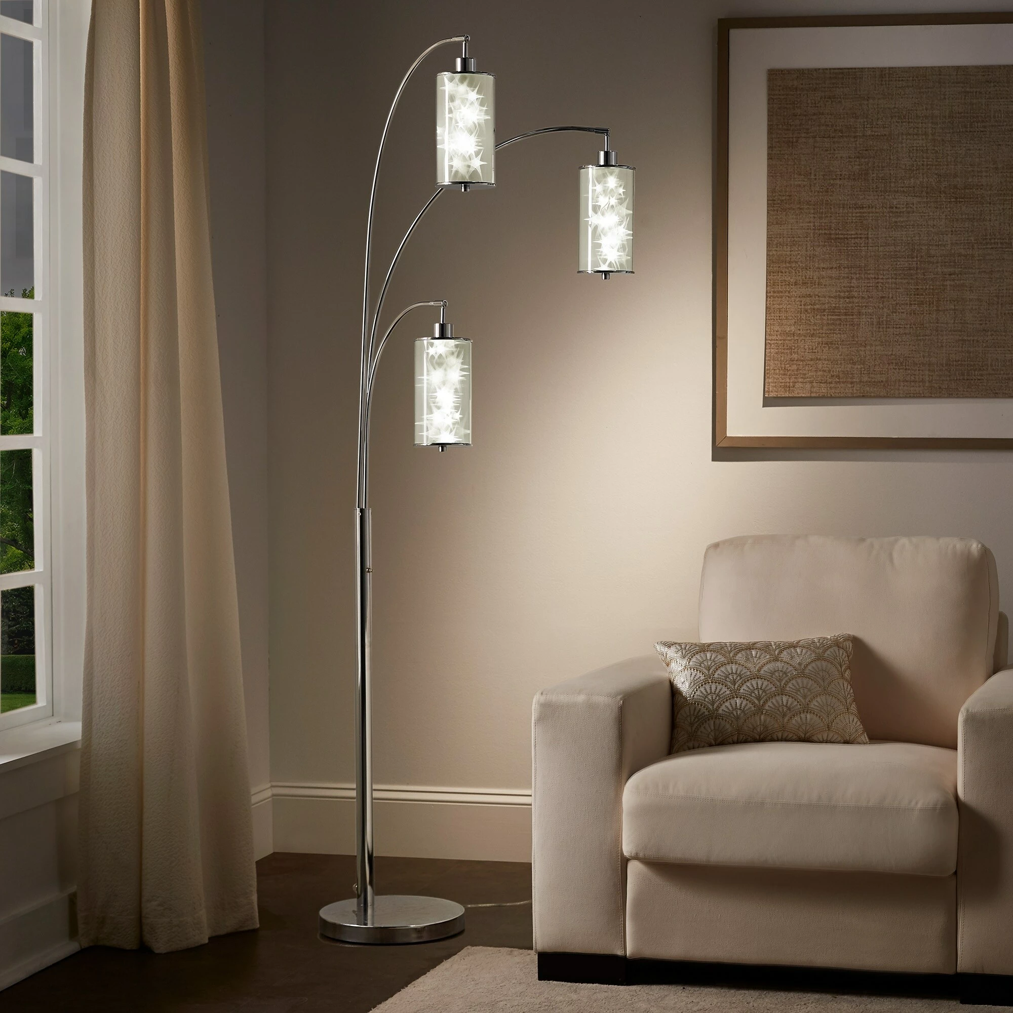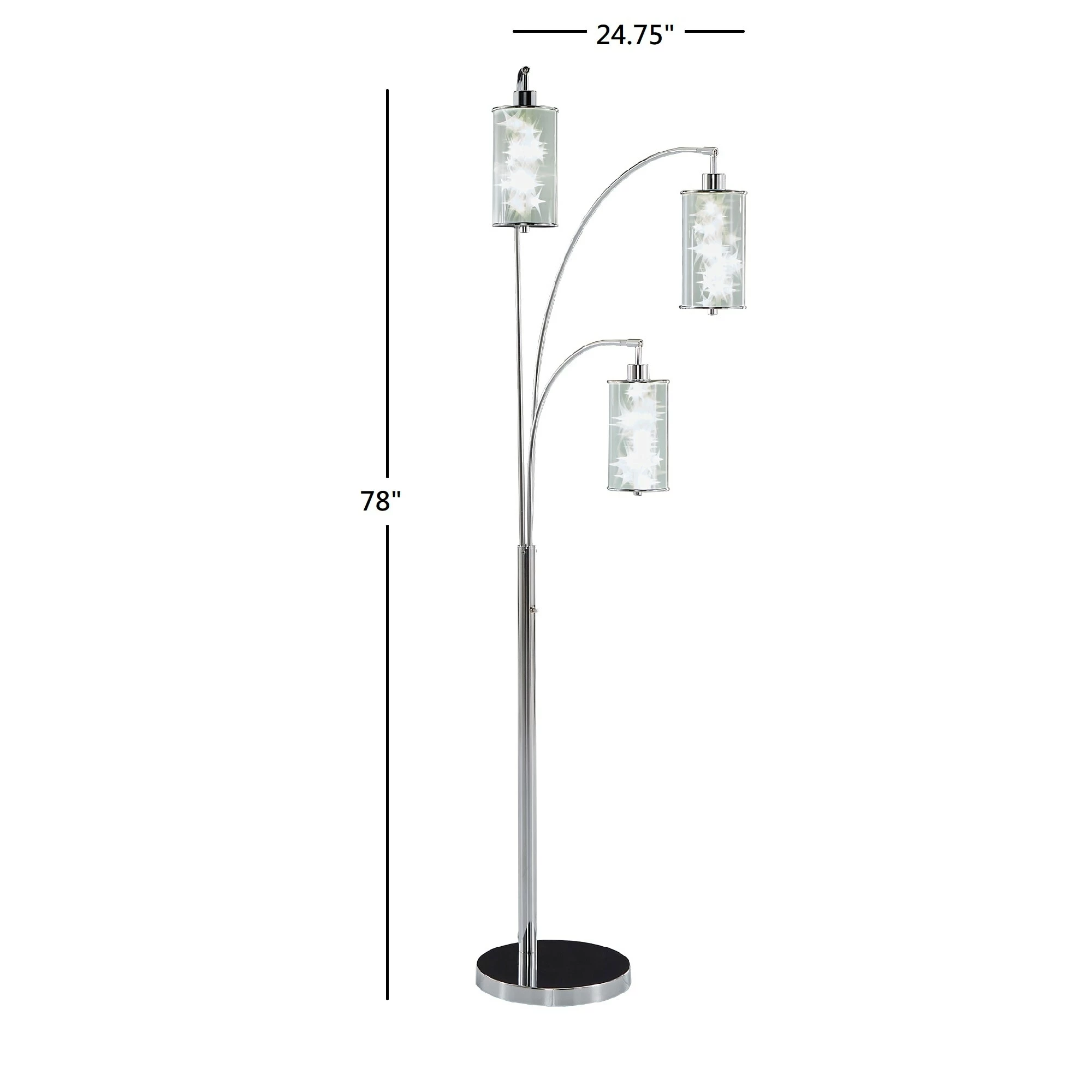 Bring the night sky right into your living room with the Aries Chrome 3-Light Star Tree Accent Floor Lamp by iNSPIRE Q Bold. This piece showcases a unique look with its shiny chrome finish and three, starry-patterned LED lights that emit a soft glow, creating the perfect amount of ambience to accent your space. Place this showstopper in any contemporary, glam, or eclectic-themed setting.