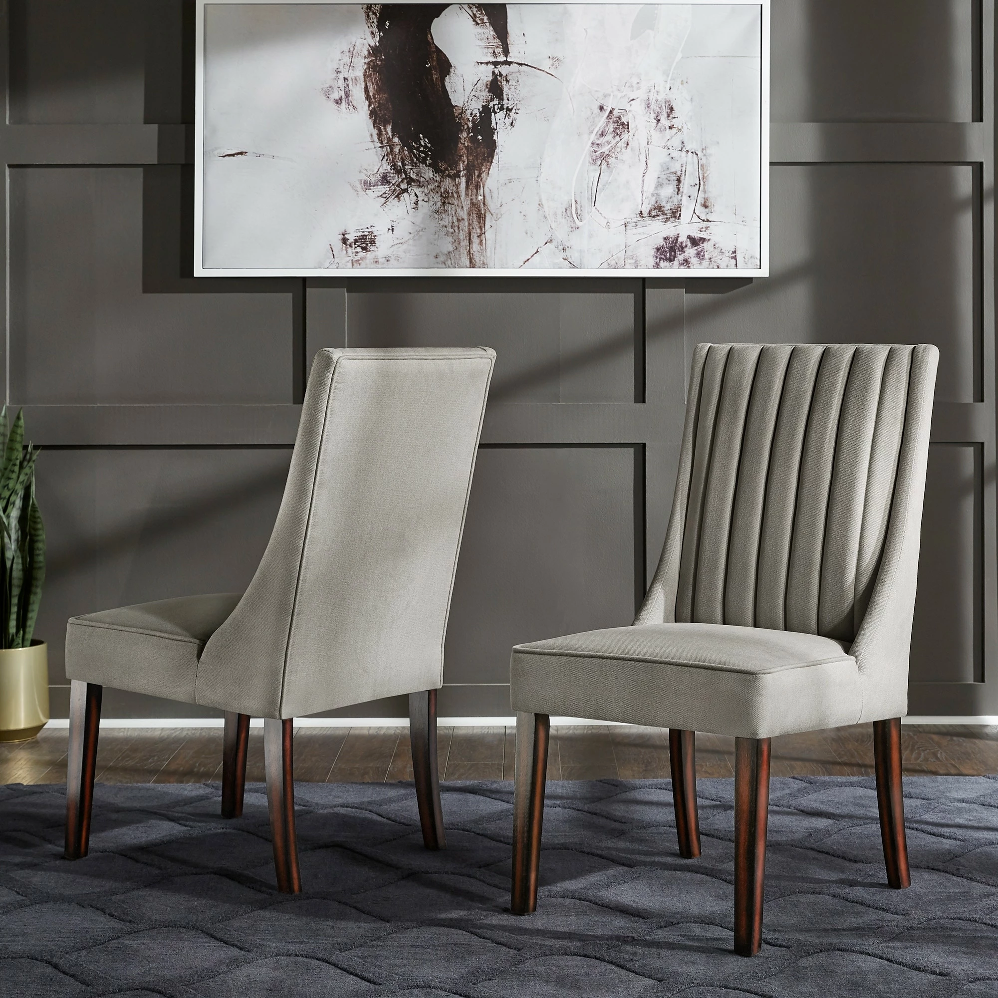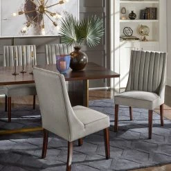 Introduce your dining room to a new world of chic elegance with the Upholstered Channel Back Dining Side Chair (Set of 2)! This contemporary dining chair is perfect for adding a touch of style to your space, and the upholstered channel back in channel tufting gives it a clean-lined look that’s sure to impress. The soft fabric upholstery in a pastel hue will soften the overall look while adding a touch of luxury and sophistication. And a sturdy wooden construction means that these chairs will last for years to come. The armless design makes it convenient to tuck under the table when they’re not in use. So don’t wait any longer; bring some luxury into your dining room with the Upholstered Channel Back Dining Side Chair (Set of 2)!
