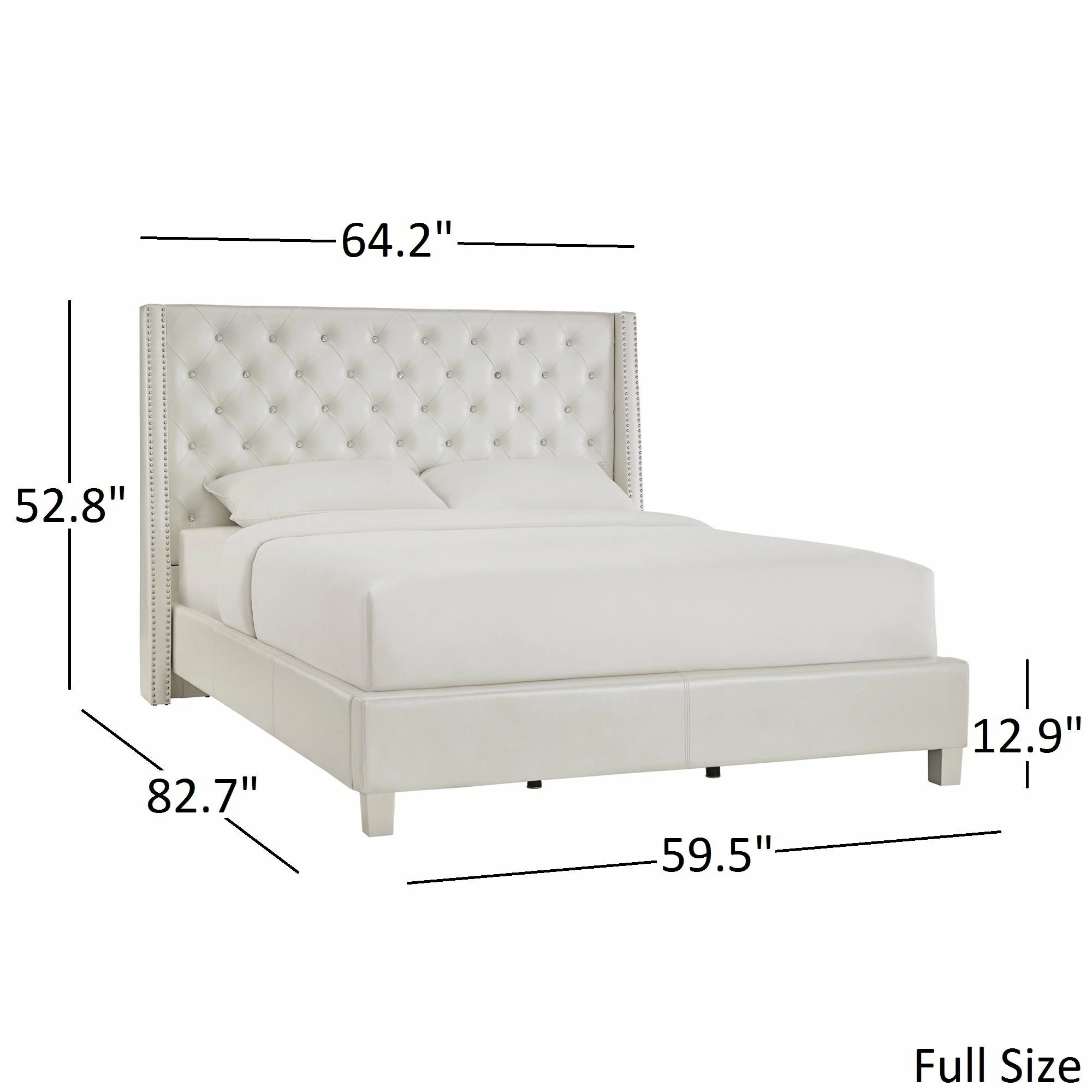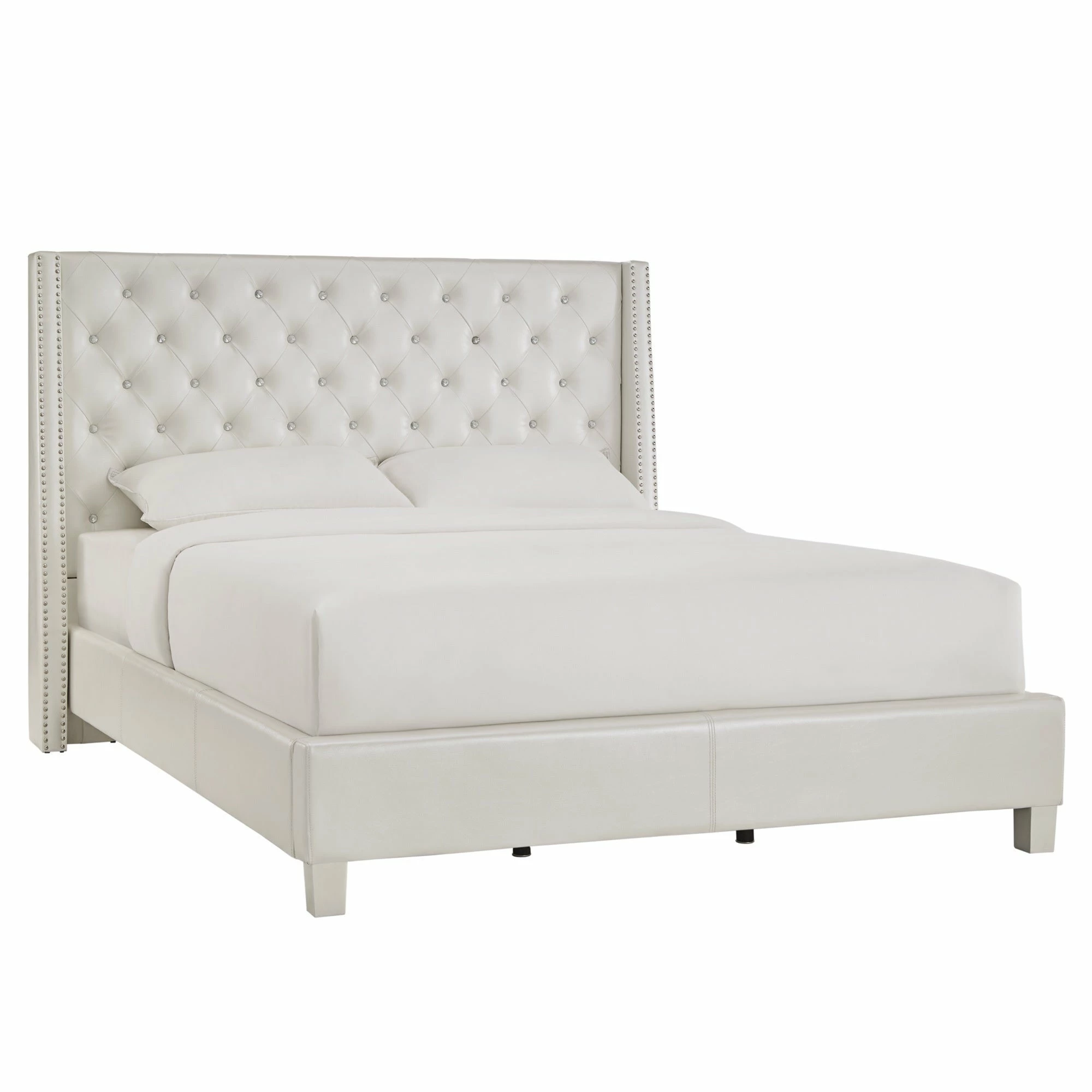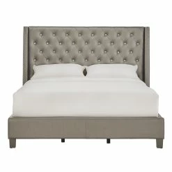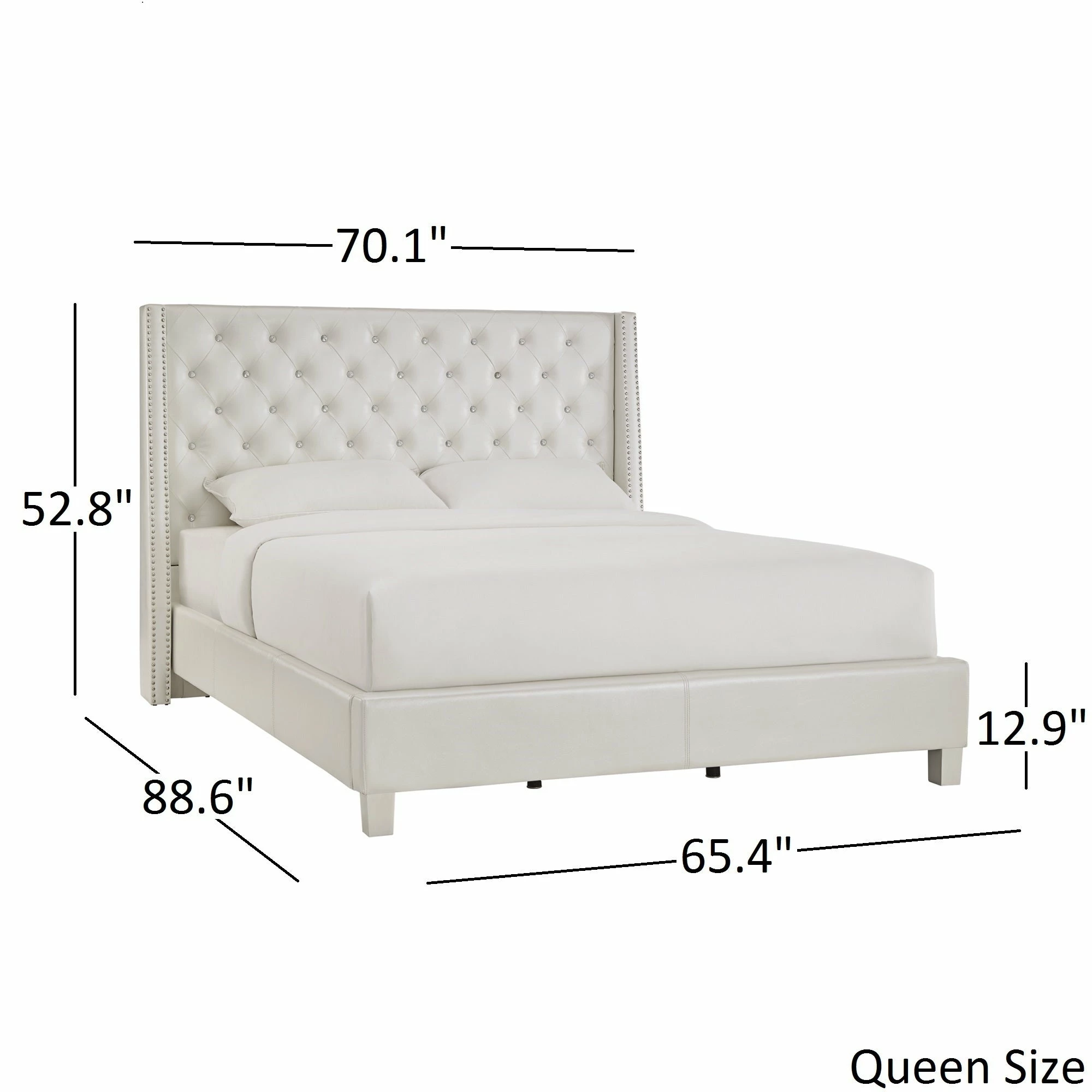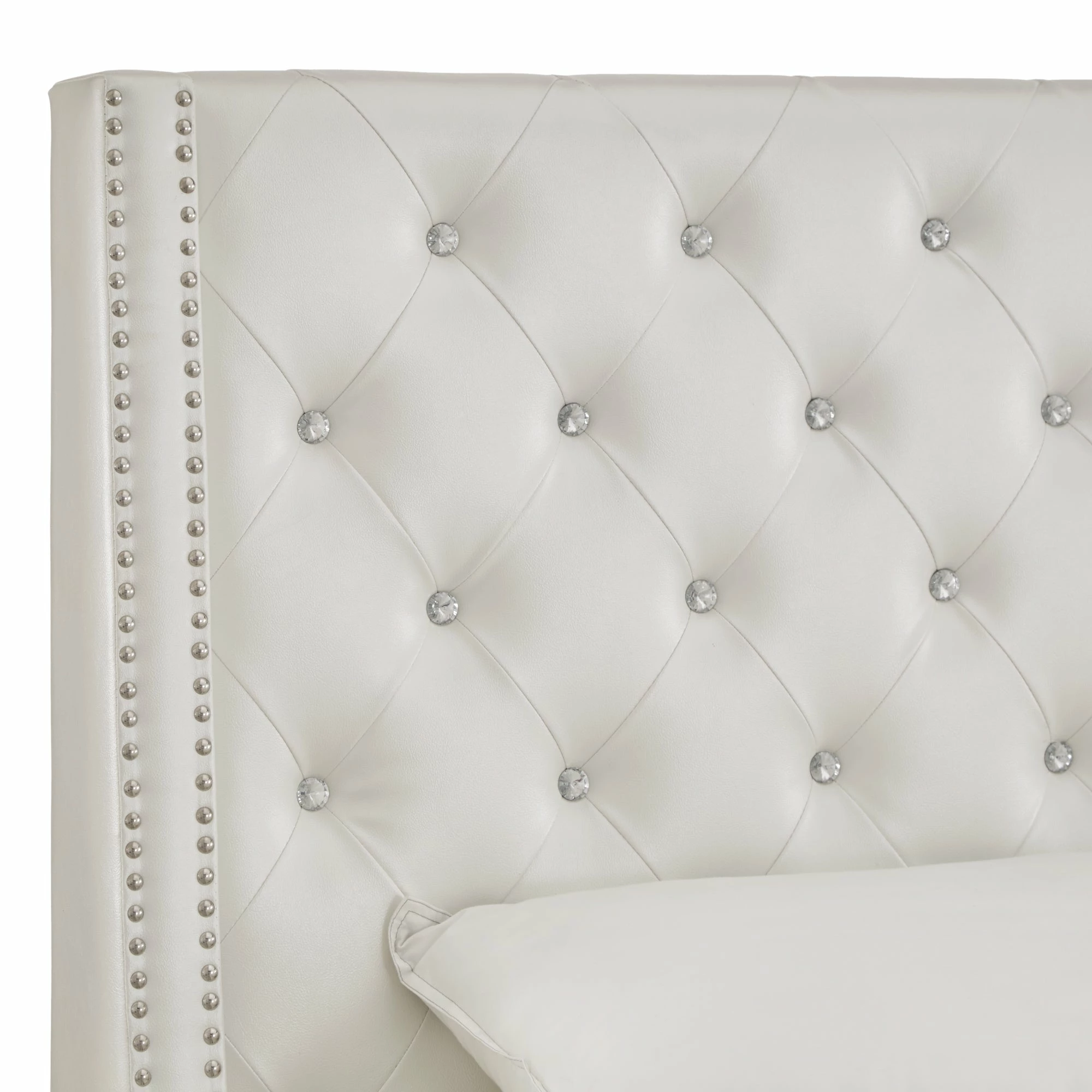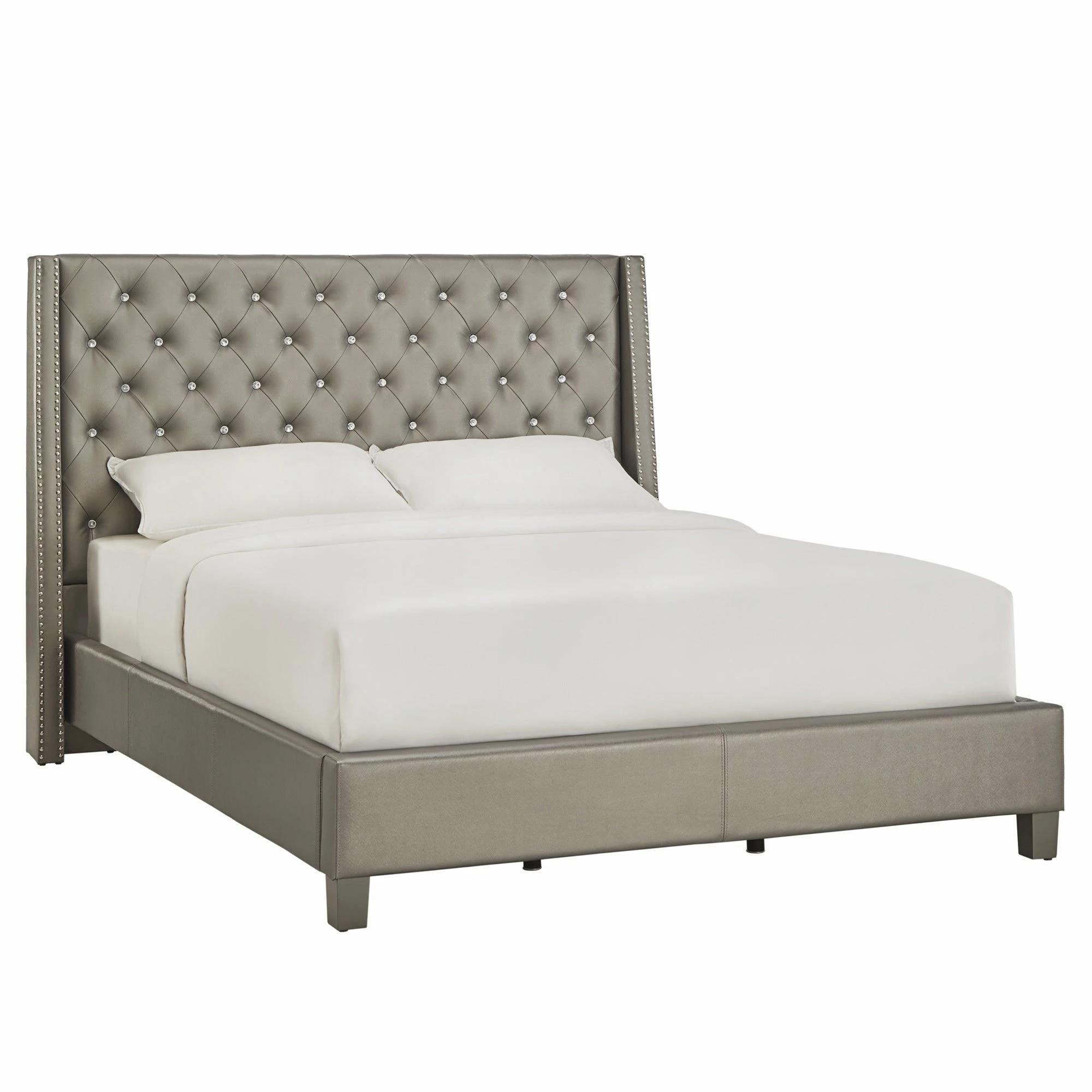Gorgeous glamour and contemporary flair makes for a luxurious addition with this bed. A sleek wingback profile is highlighted with electrifying crystal button tufting and silvertone nailhead details. Elevate any sleep space with the austere and graceful placement of this bed.
