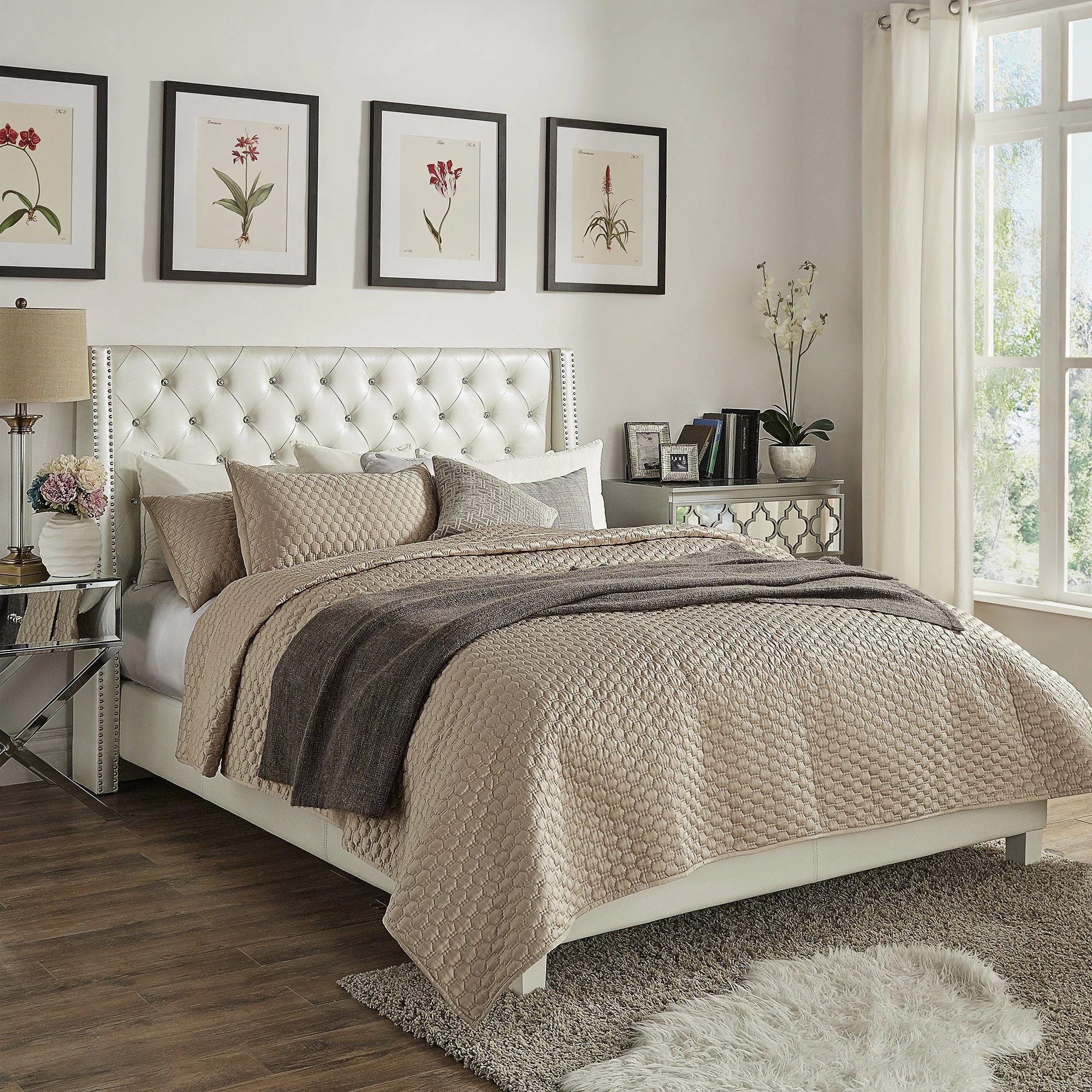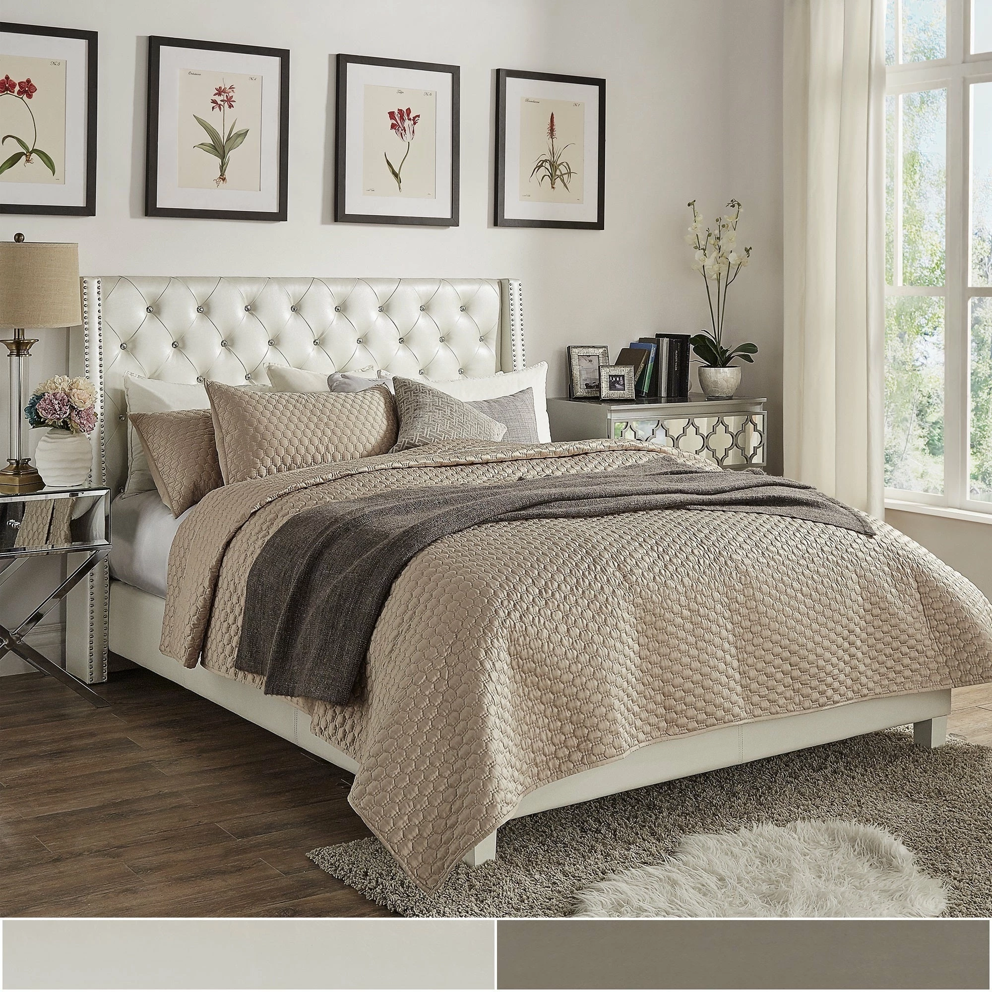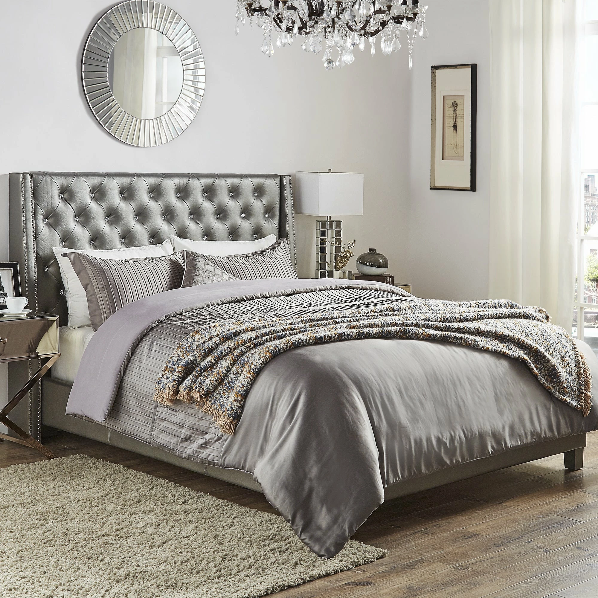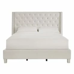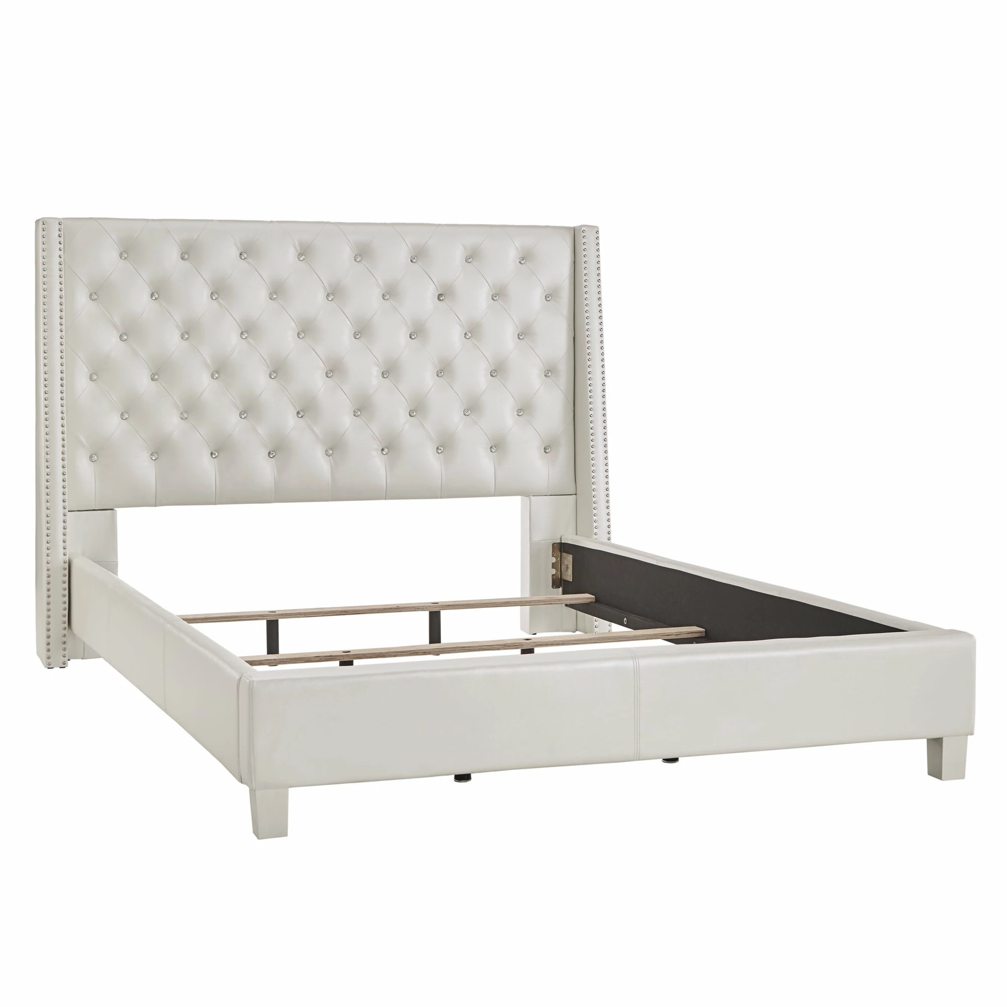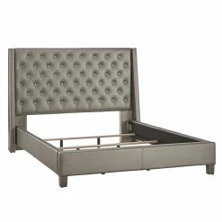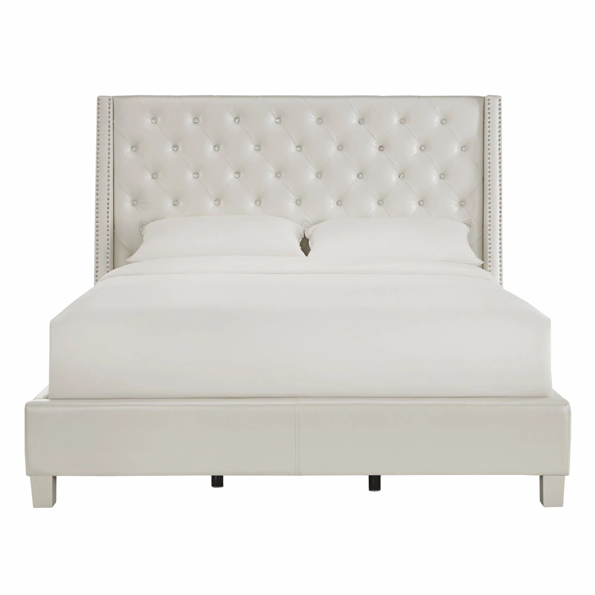 Gorgeous glamour and contemporary flair makes for a luxurious addition with this bed. A sleek wingback profile is highlighted with electrifying crystal button tufting and silvertone nailhead details. Elevate any sleep space with the austere and graceful placement of this bed.