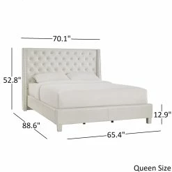- Queen bed overall: 88.6 inches long x 70.1 inches wide x 52.8 inches high