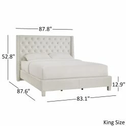 - King bed overall: 87.6 inches long x 87.8 inches wide x 52.8 inches high