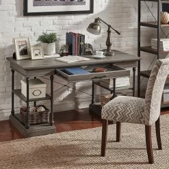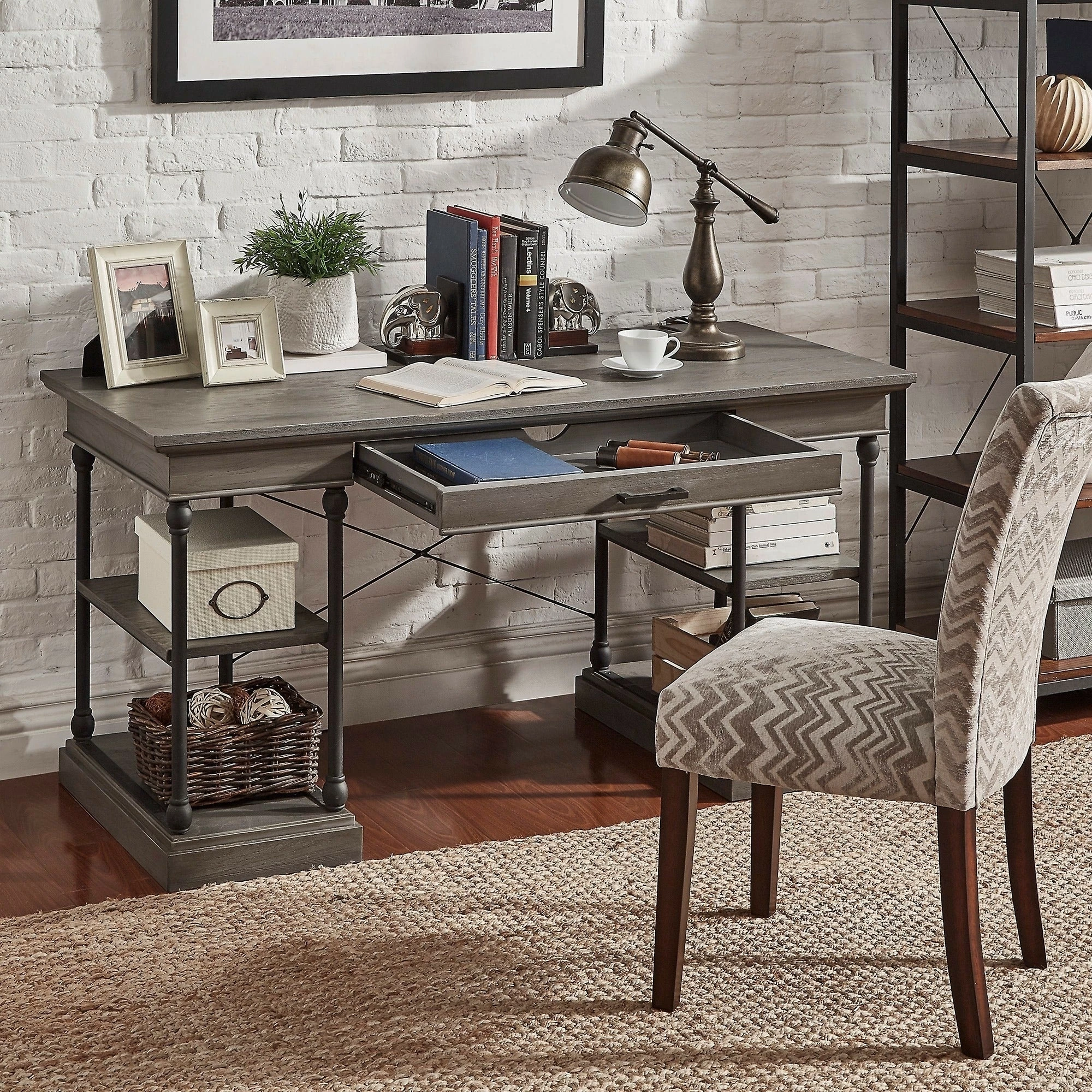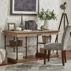 Add bold and rustic character to any room with this upscale industrial-styled Barnstone Desk from iNSPIRE Q® Artisan. Enjoy classic design styling with open sections to meet organizational needs. Storage options are endless, and you’ll love the spacious desk top. It also features one drop down drawer for extra work surface or storage capabilities.