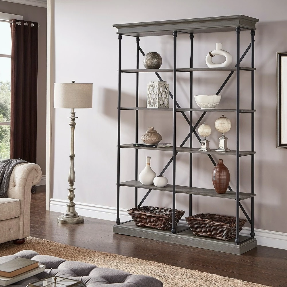 A rustic and refreshing complement to any home, this excellent double bookcase by iNSPIRE Q features a powder-coated metal frame with solid poplar wood shelves. The open design creates an airy feel that’s perfect for drawing attention to your belongings, while still providing sturdy support. This versatile piece comes in three rich finishes that pair beautifully with a variety of decor styles.