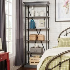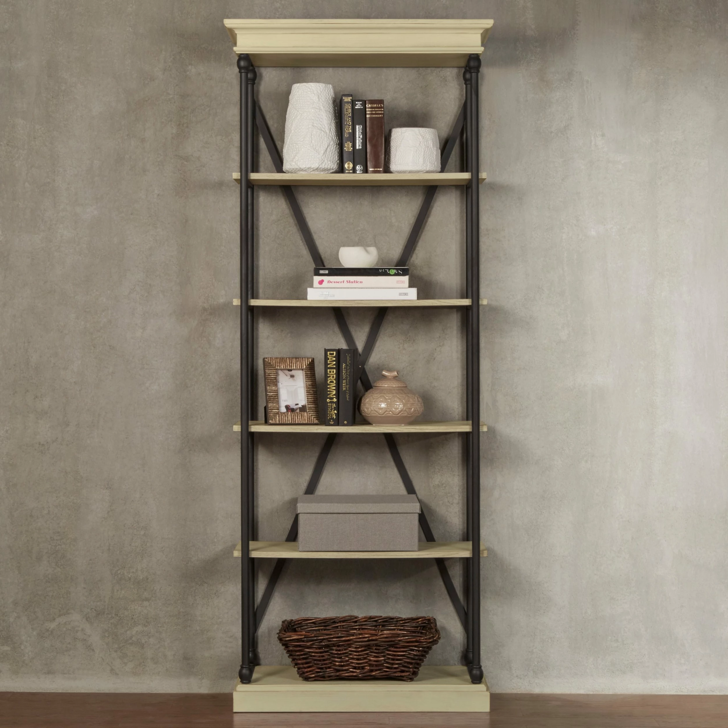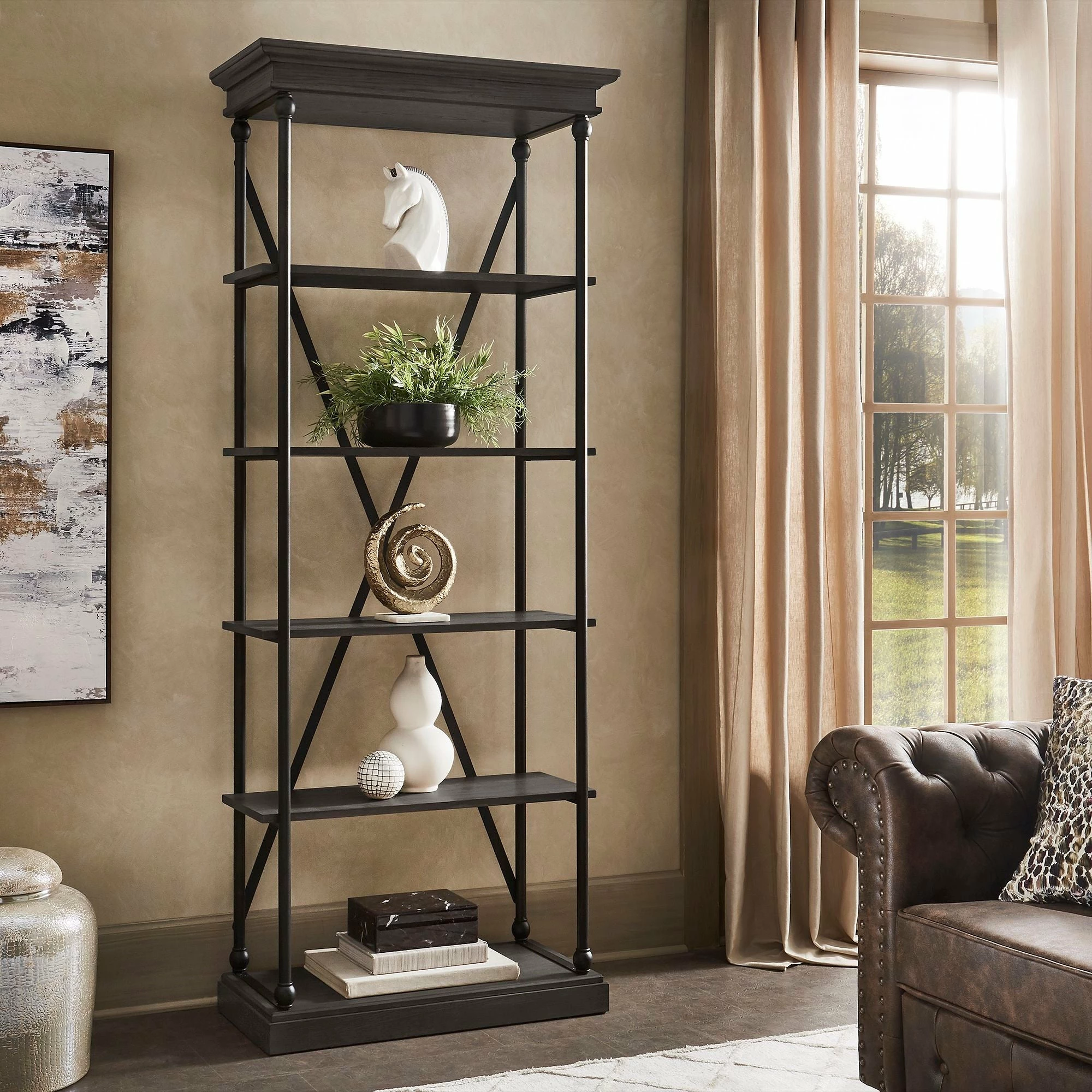 Showcase your favorite books and other decor items with the Barnstone bookshelf from iNSPIRE Q® Artisan. Available in multiple finishes, this bookcase can easily complement your existing decor. The five fixed shelves are supported by a powder-coated metal frame for added strength and stability. Constructed from poplar wood and elm veneers, this shelving is a stylish addition to any room.