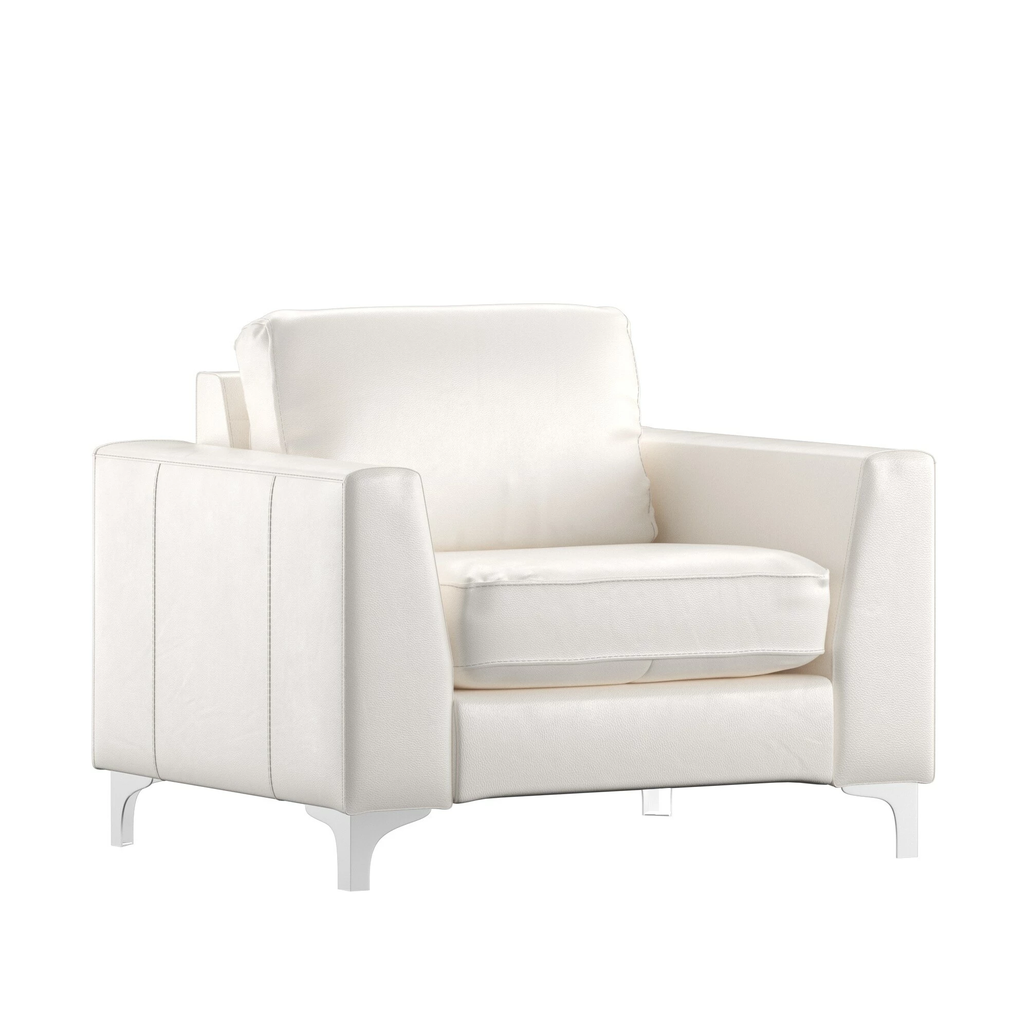 This leather seating arrangement from iNSPIRE Q Modern will create an air of understated sophistication in any living room. Simple contours and luxurious leather upholstery recall a mid-century look while chrome feet give the design a modern twist. The smooth leather upholstery is perfect for sitting and chatting with loved ones. Bring comfort and style into your home with these beautiful pieces.