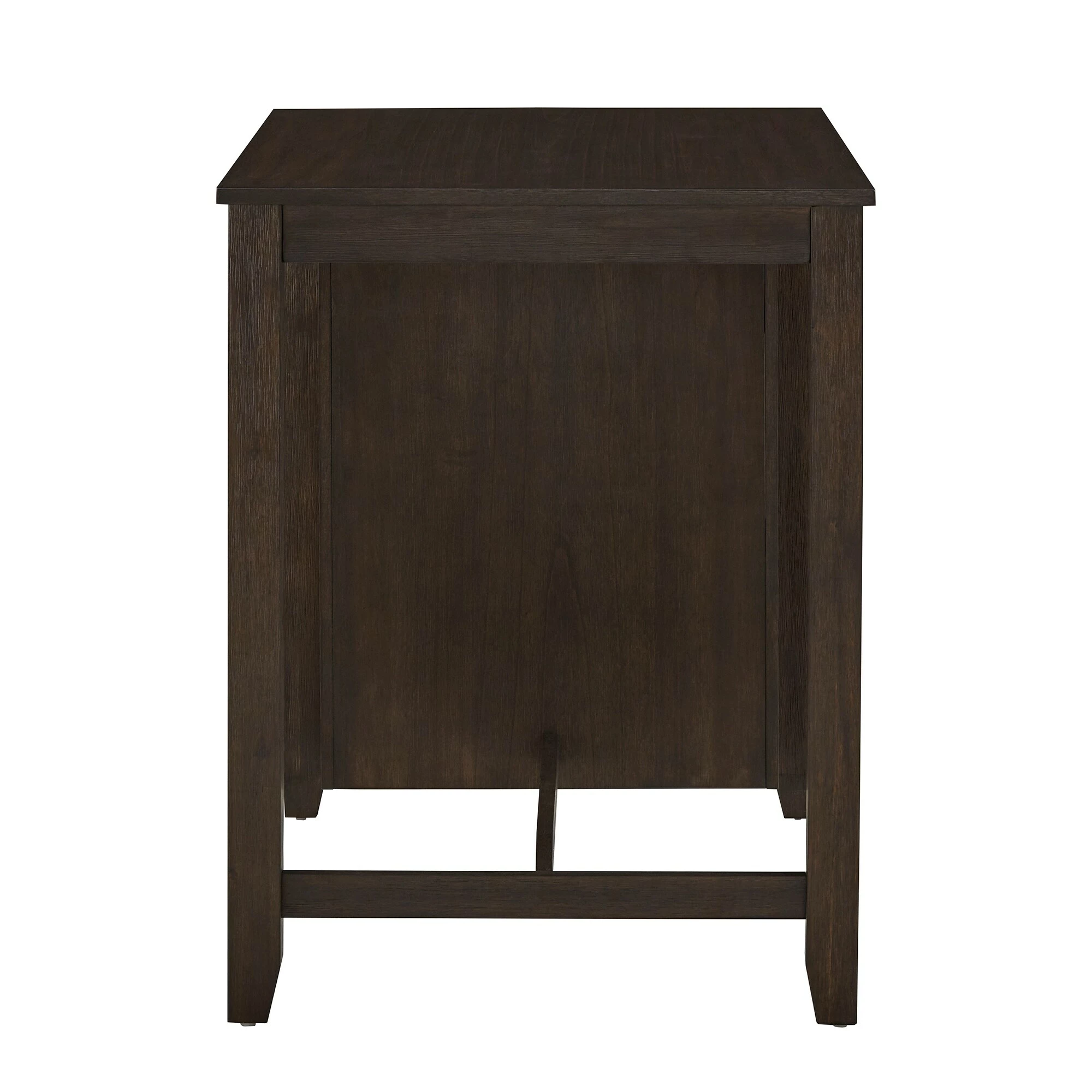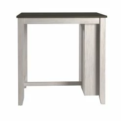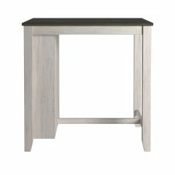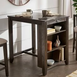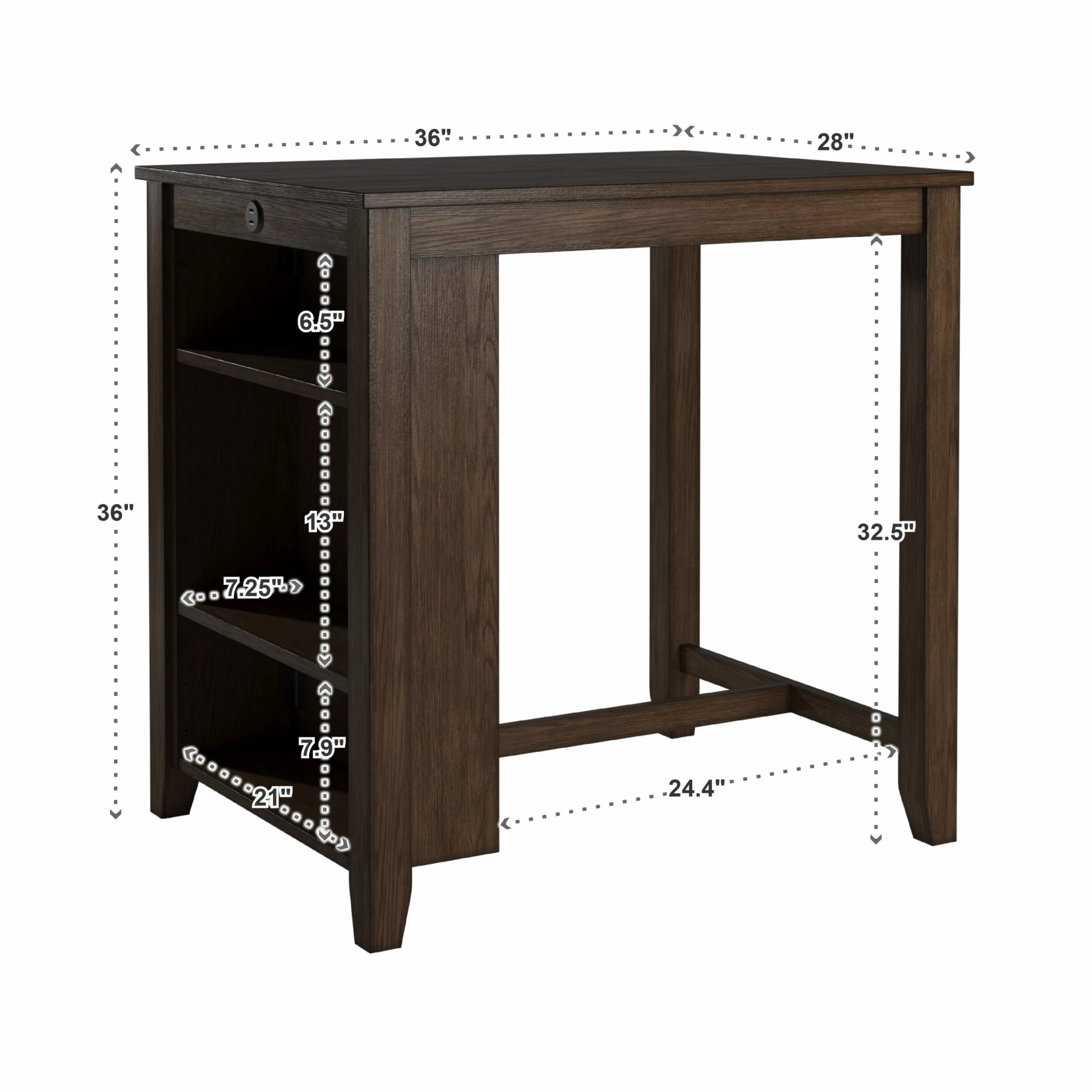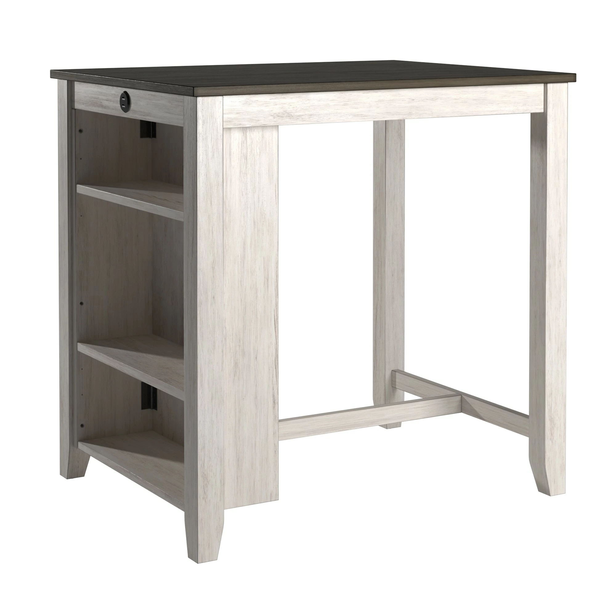 Crisp, compact, and charming, this counter height table is sure to take your decor to new heights. The sleek little design is highlighted with rustic details in the visible wood grain and turned legs. Three shelves provide extra storage, and a USB charging station lends abundant convenience.
