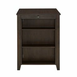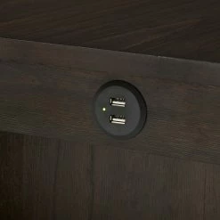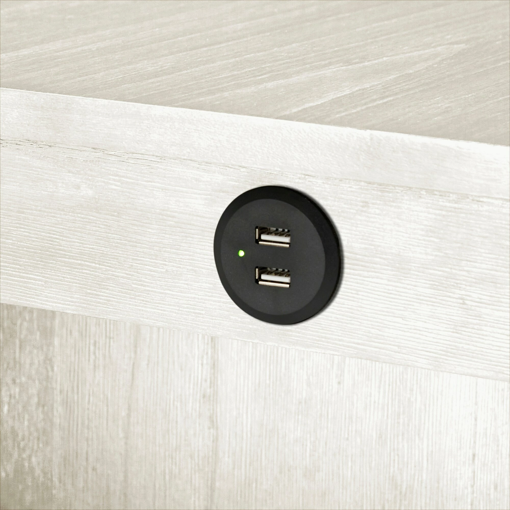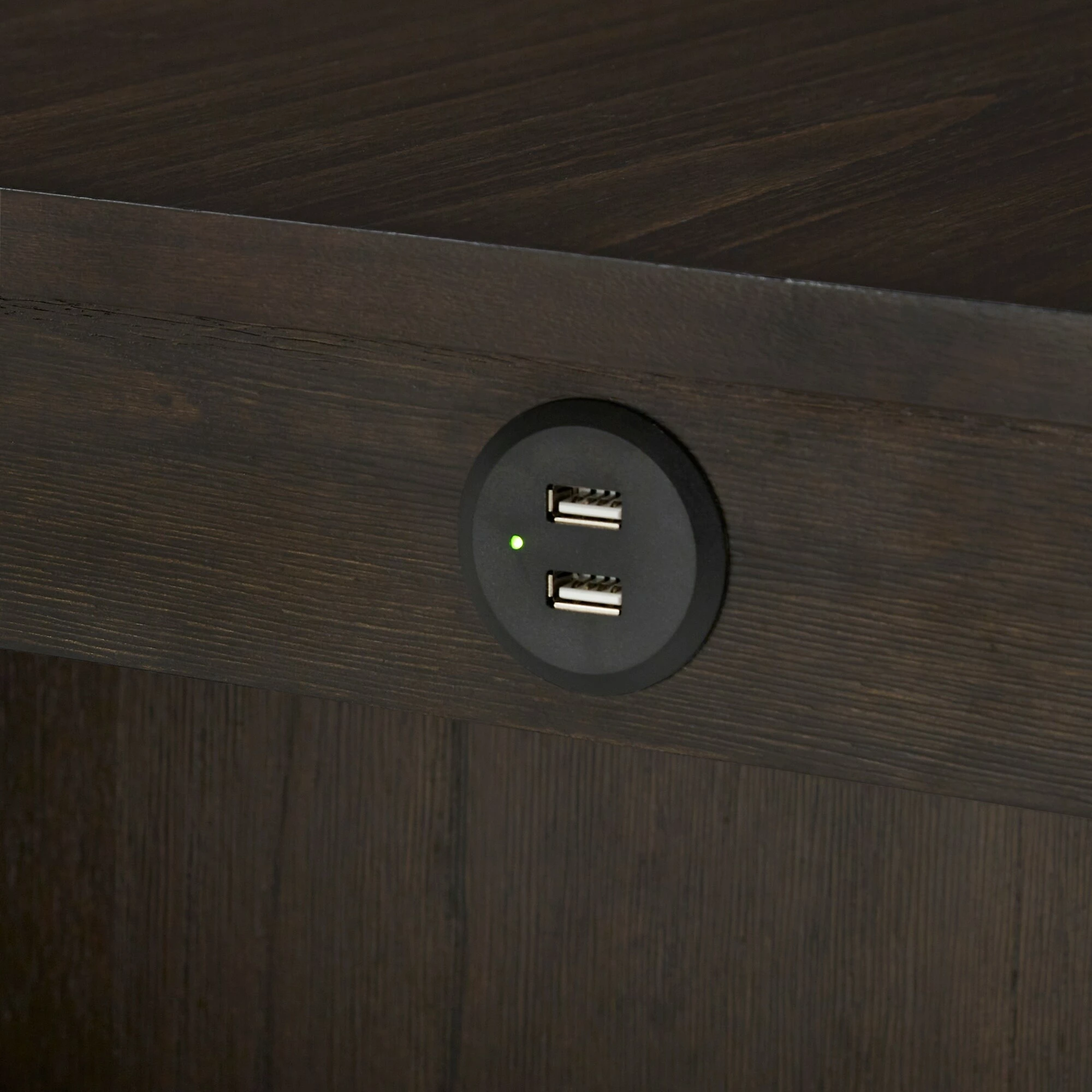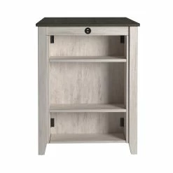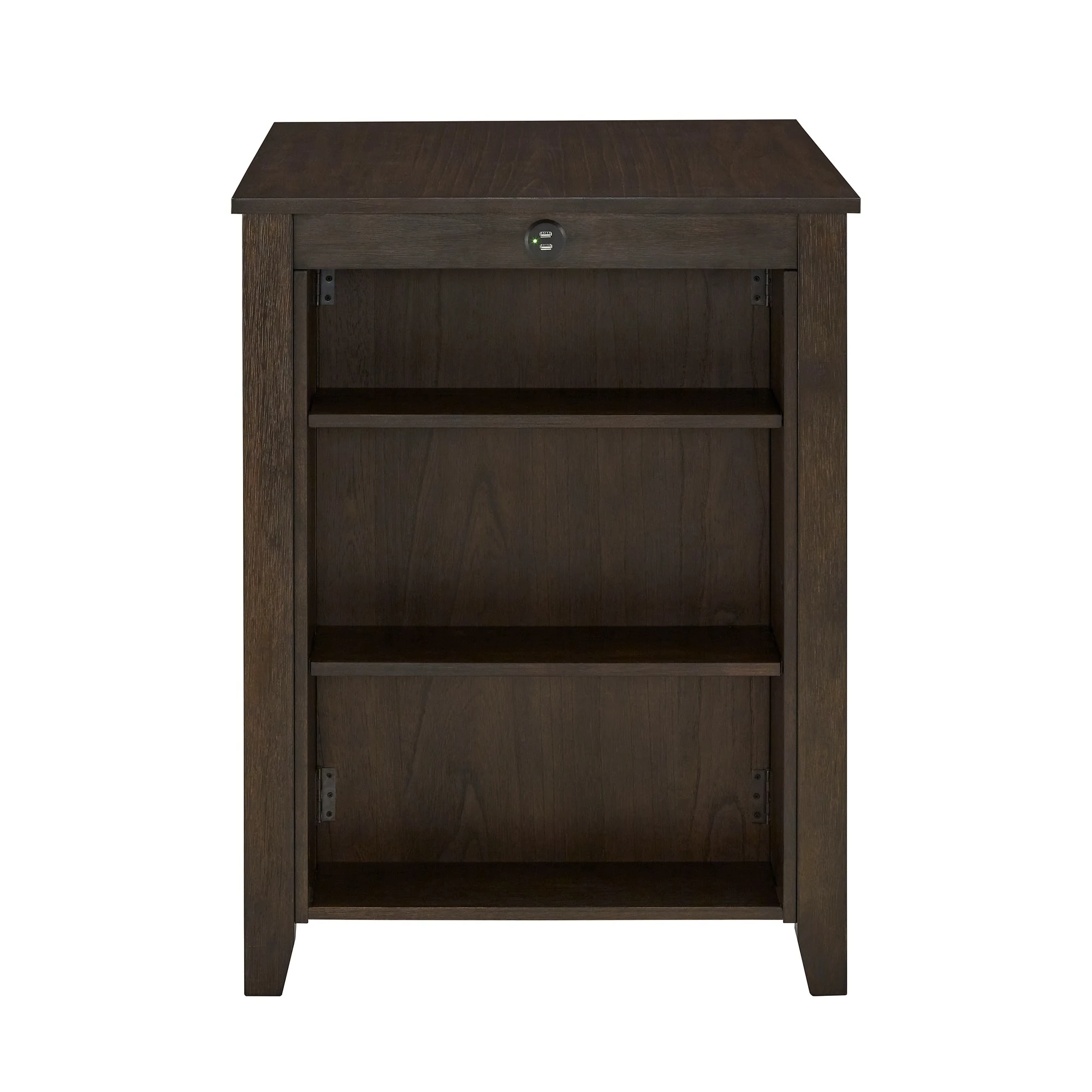 Crisp, compact, and charming, this counter height table is sure to take your decor to new heights. The sleek little design is highlighted with rustic details in the visible wood grain and turned legs. Three shelves provide extra storage, and a USB charging station lends abundant convenience.
