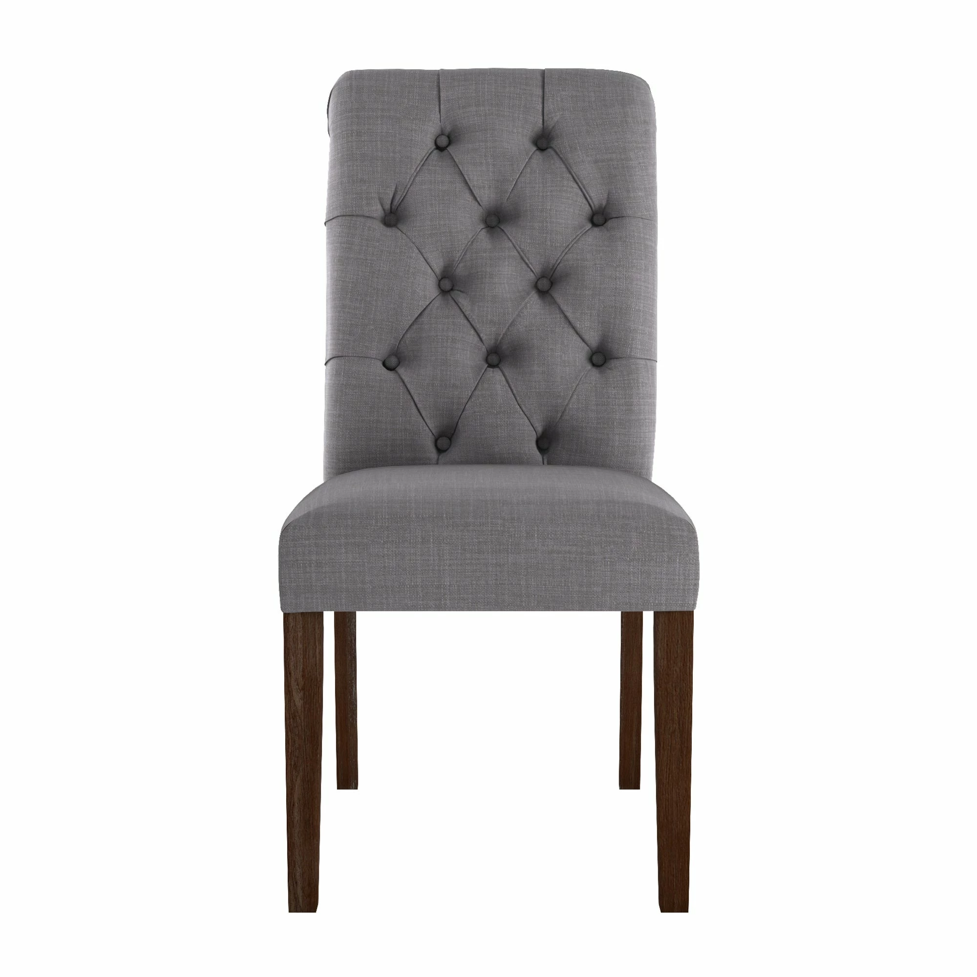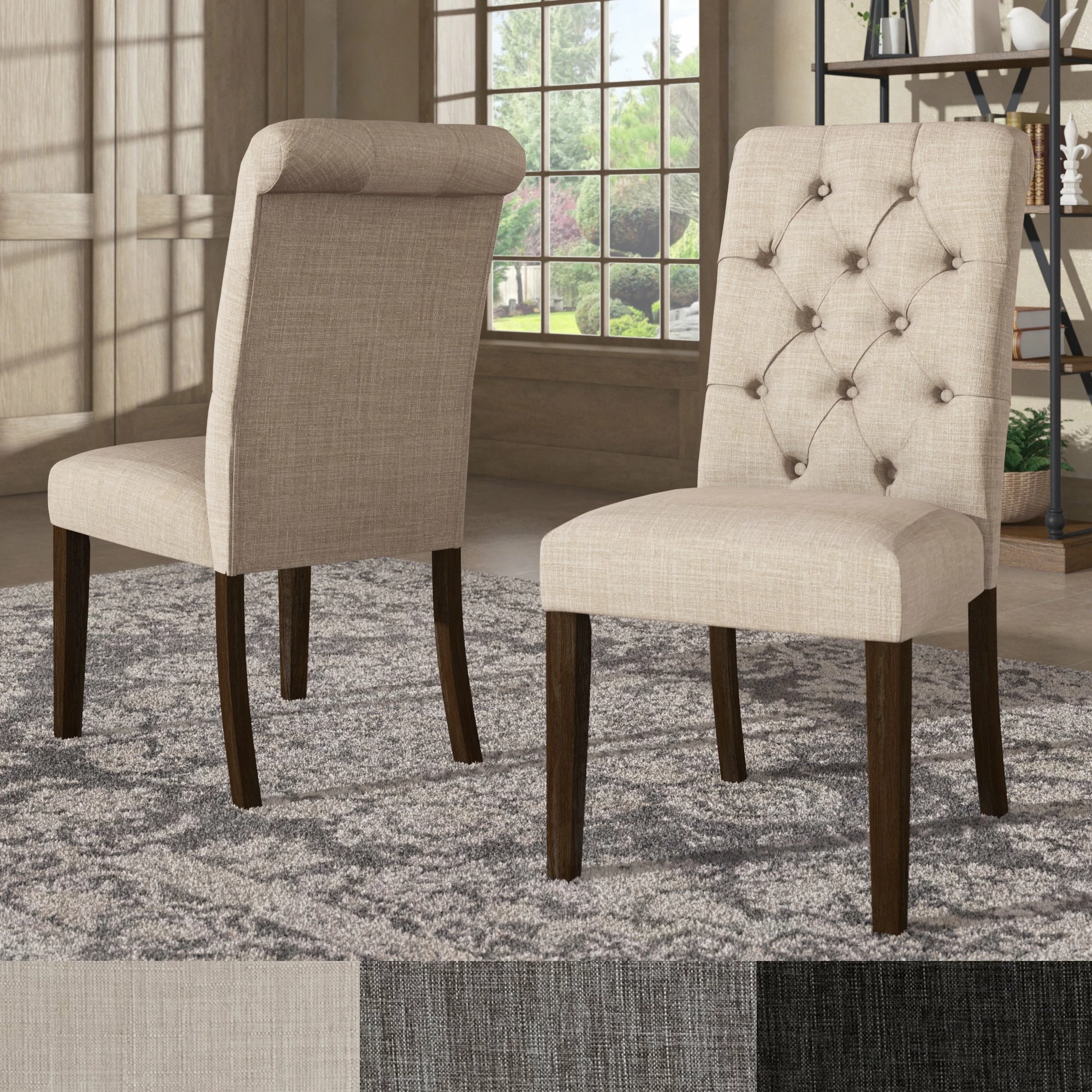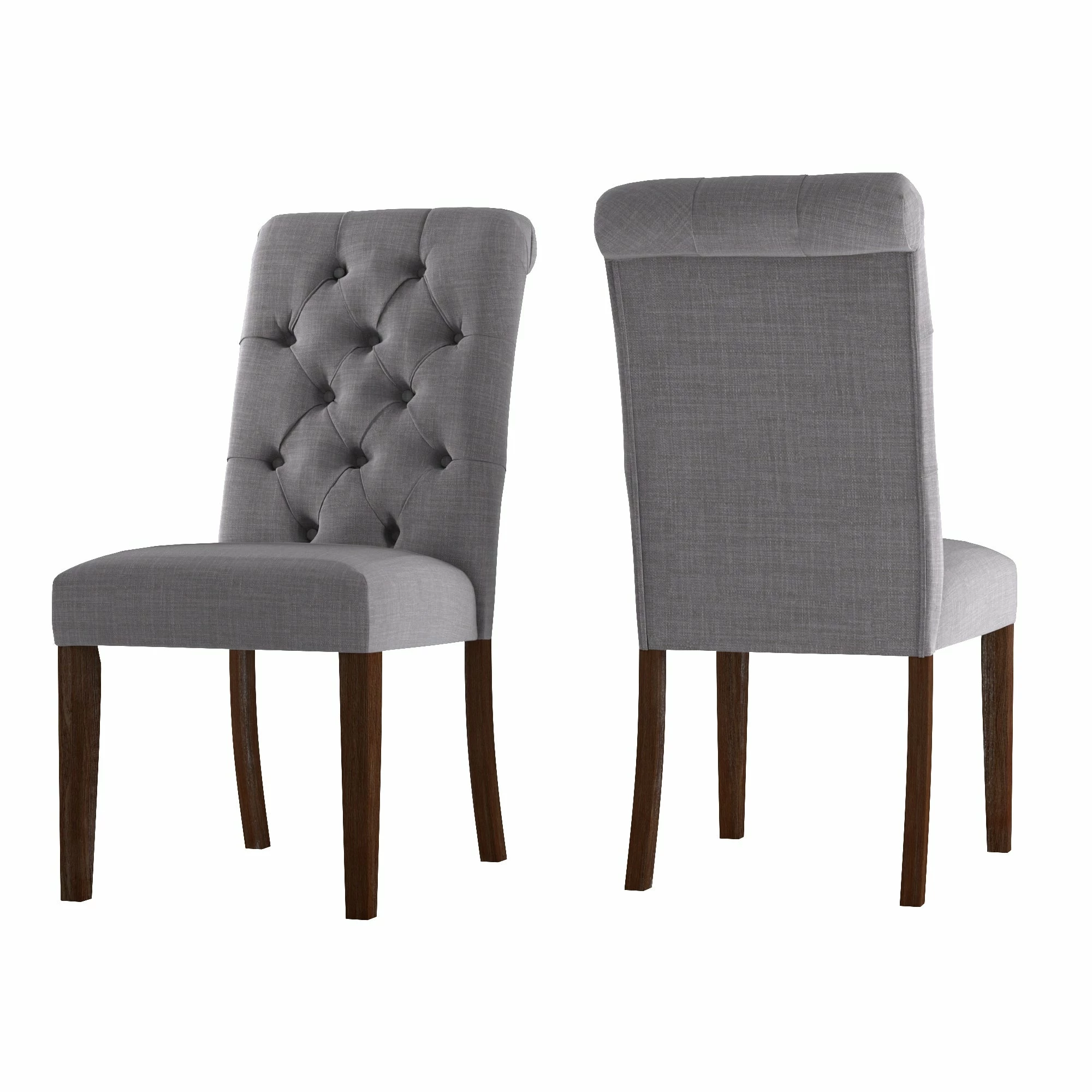 - Button-tufted, rolled chair backs