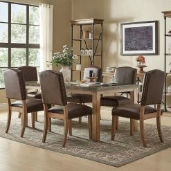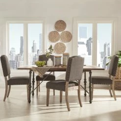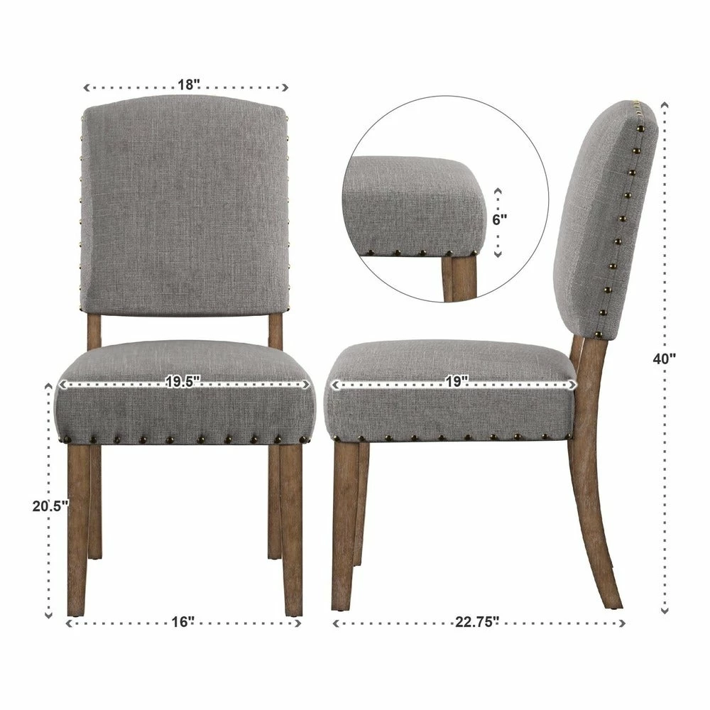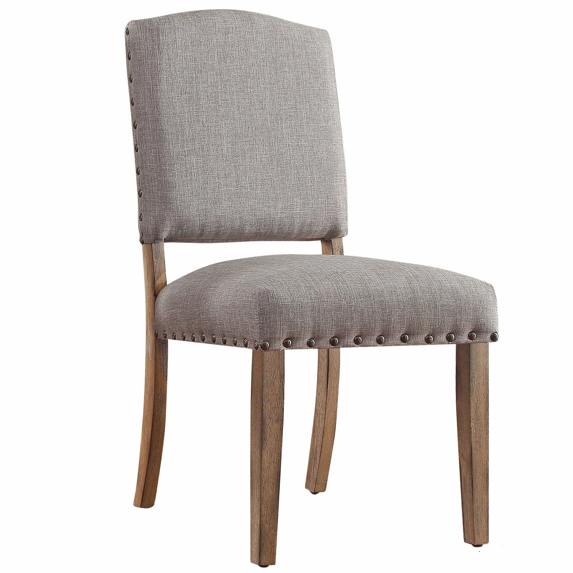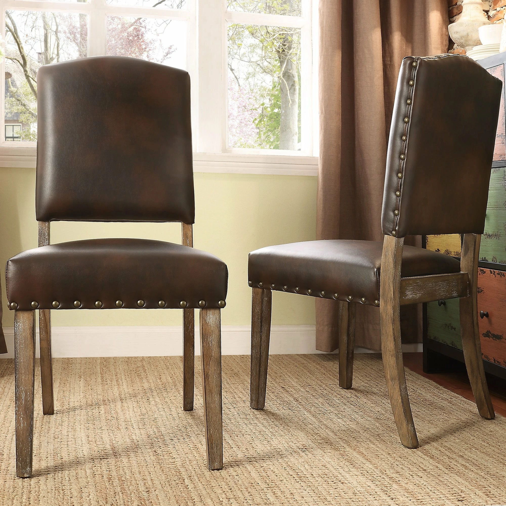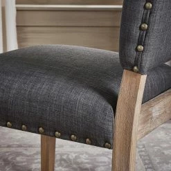 Stylize your dining room with these gorgeous Benchwright premium side chairs from iNSPIRE Q® Artisan. Made with a solid rubberwood frame, this classic chair is covered in your choice of upholstery and then finished with a nail-head trim. The legs feature reclaimed finish to complete the rustic look.