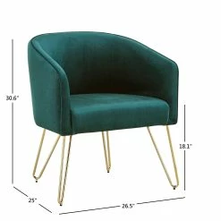 Bring an old Hollywood dream right into your home with the Bette Gold Finish Velvet Accent Chair from iNSPIRE Q Bold. This chair adds seating and a rich pop of color to any room. Founded on dependable gold-finished legs, this chic chair features velvet upholstery and plush foam cushioning. The back of the chair is curved for added support, so you can sit and relax comfortably for hours.