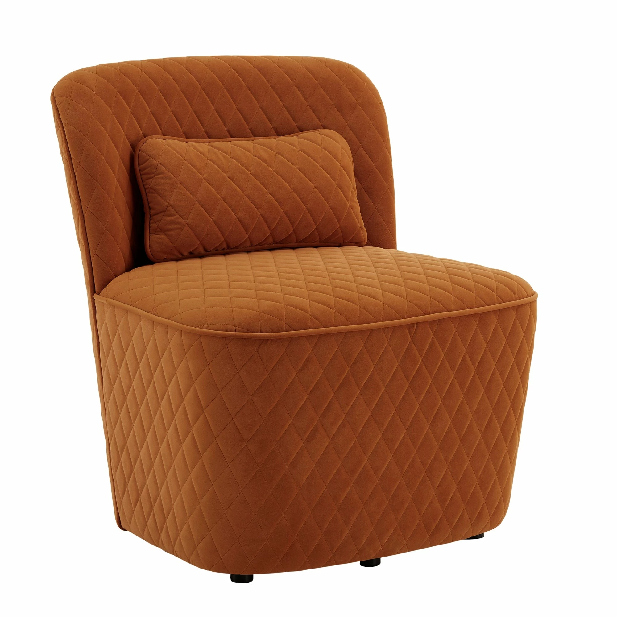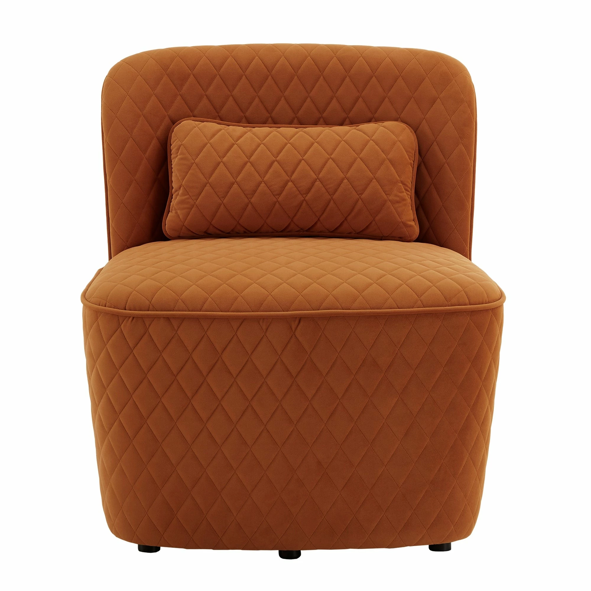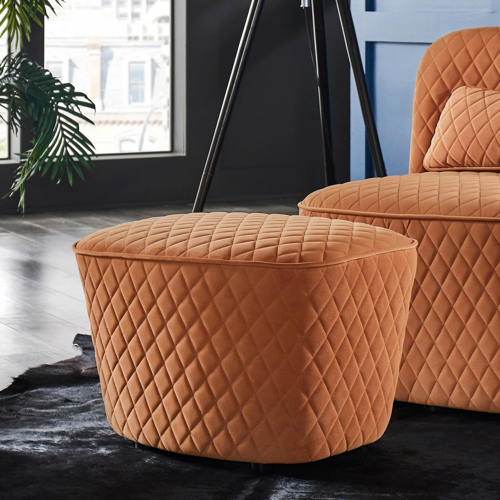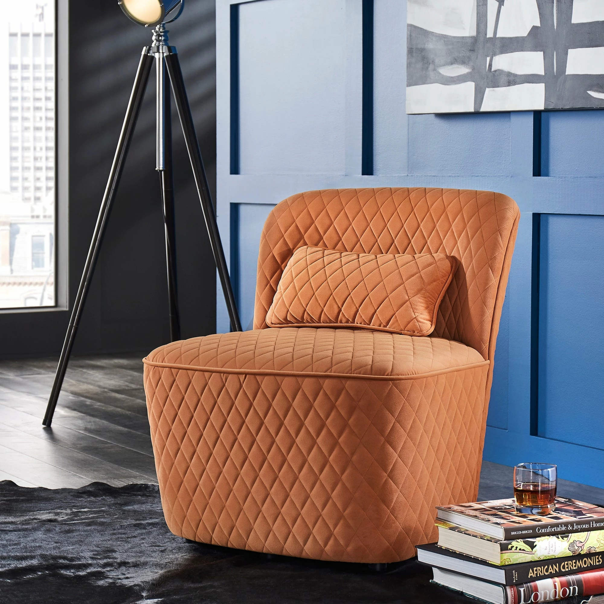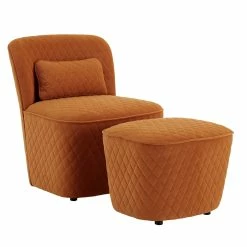 Splash some color into your living space with the iNSPIRE Q Modern Braden Orange Fabric Chair. This stunning chair comes with an accent pillow and ottoman so kicking back and relaxing has never felt more enjoyable. All pieces of this set feature a geometric, diamond-shaped pattern in the fabric upholstery for a distinctly contemporary aesthetic. The lively orange hue evokes a sunset-like vibe that is sure to brighten any room in your home. This fresh, new chair is crafted with rubber wood, hardwood, and foam to provide the comfort and support you deserve after a long day.