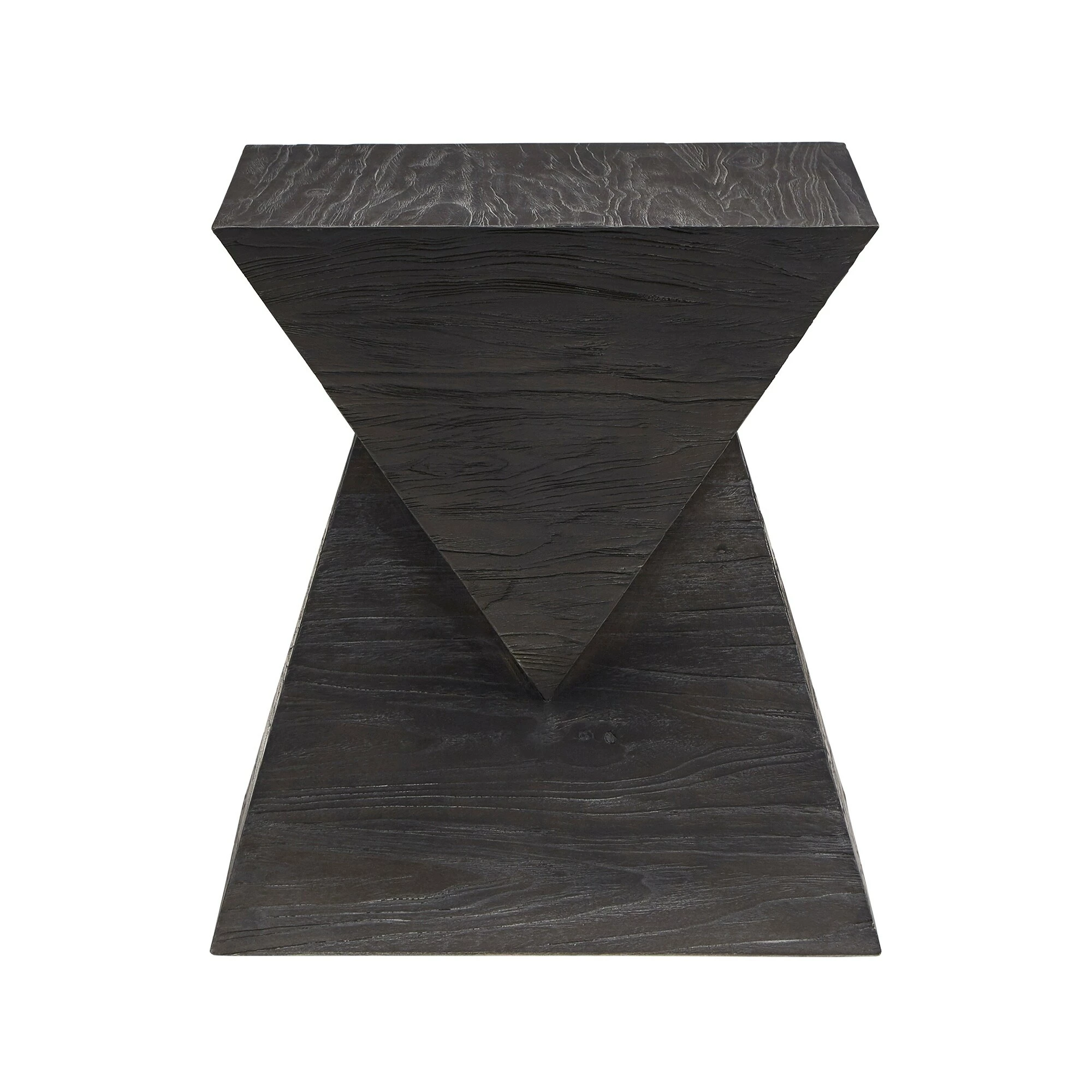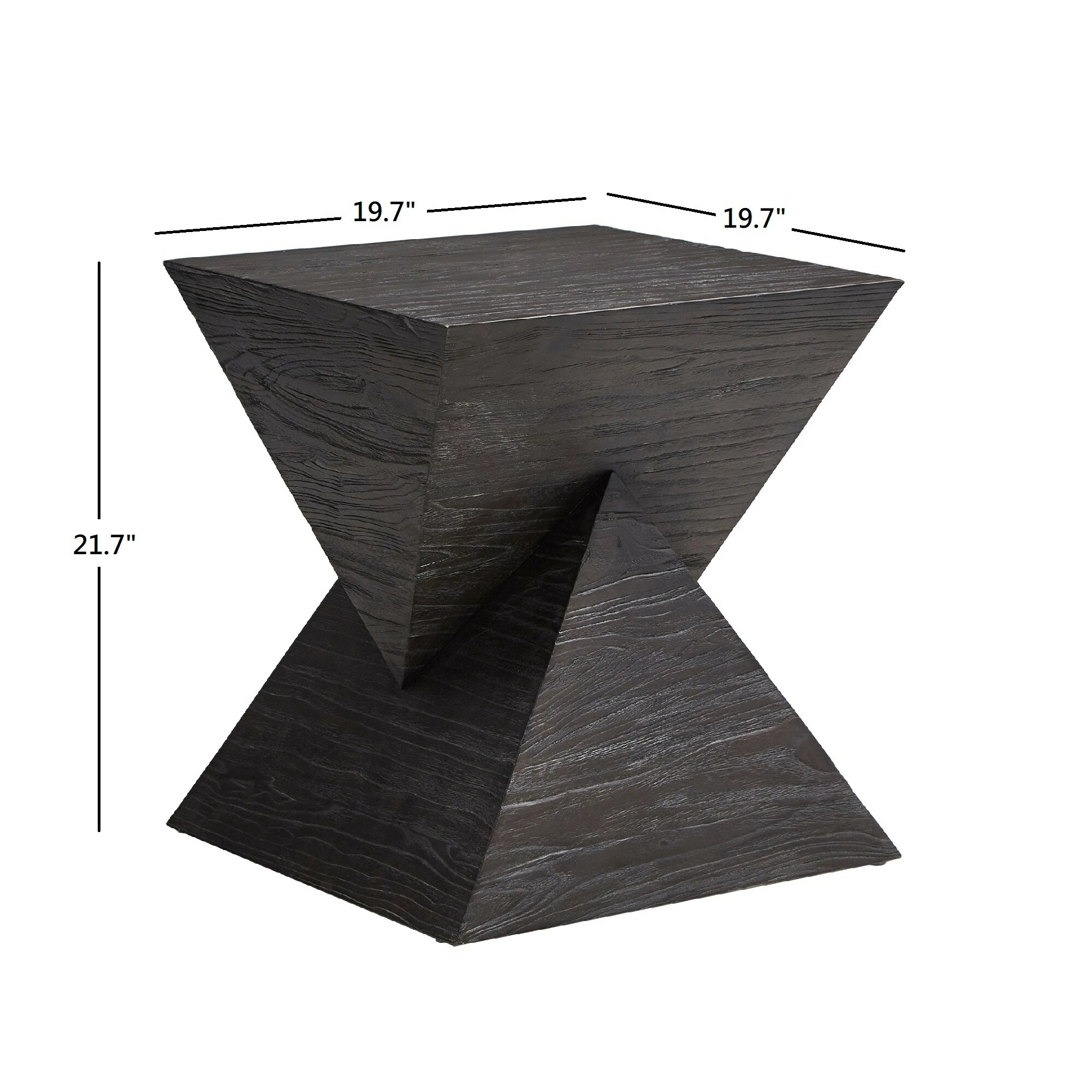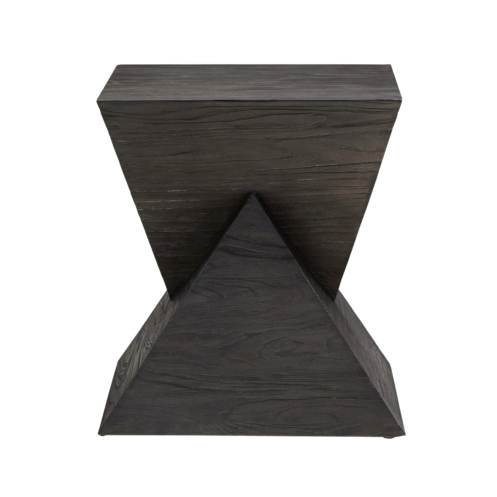 Make an extraordinary statement in your home with the Brennan Distressed Double Triangular Prism Shape End Table from iNSPIRE Q Modern. This up-to-date end table showcases a show-stopping geometric design with clean lines and smooth surfaces. A distressed wood grain finish adds some vintage charm to the overall piece. Crafted from new elm and solid wood for stability and durability, this innovative end table works great in contemporary settings.