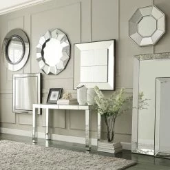 Hung above your entry console, or used as a stunning alternative to a traditional bathroom vanity mirror, this elegant wall mirror adds upscale elegance to your space. Mirror on mirror tones are a lovely neutral that complements any decor.