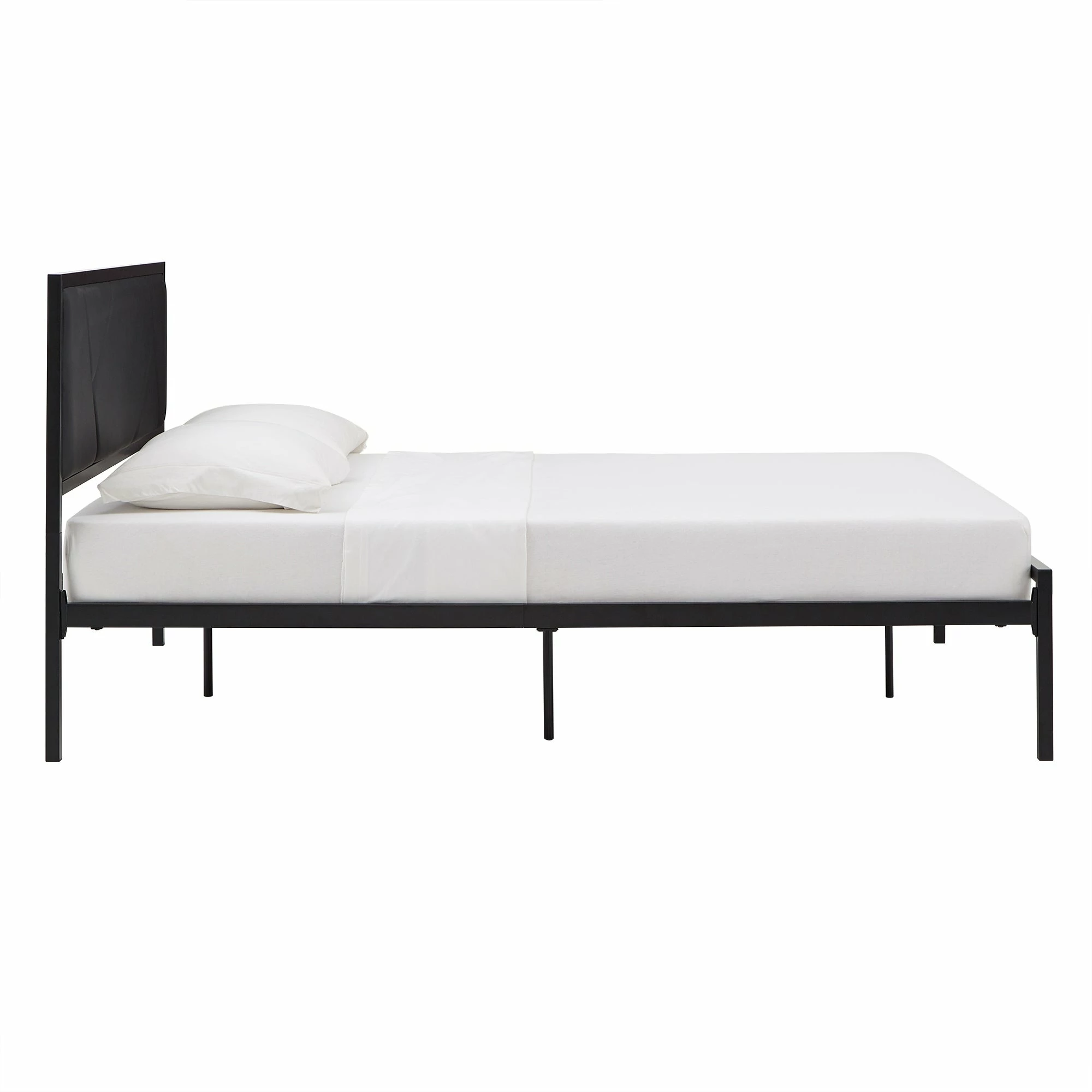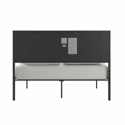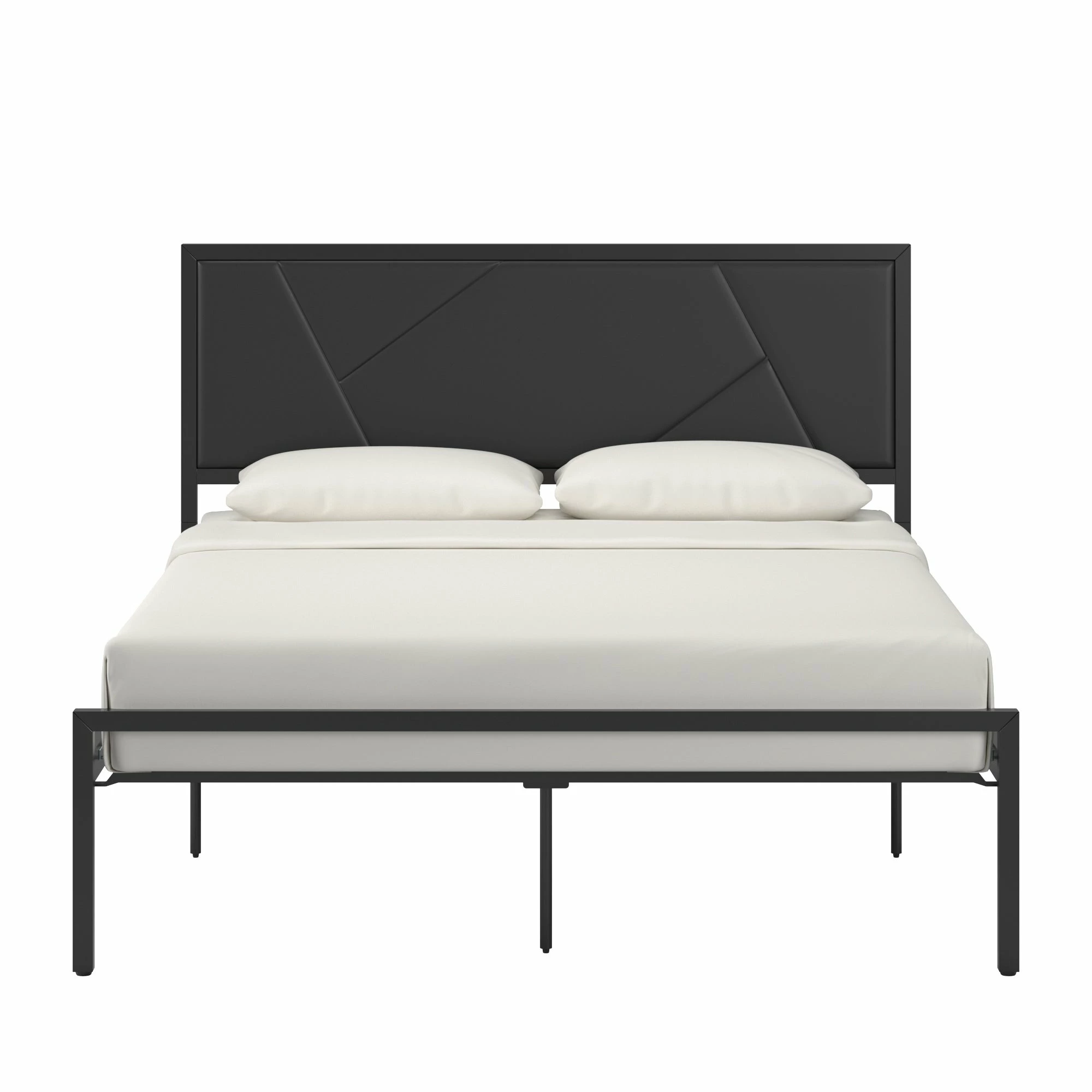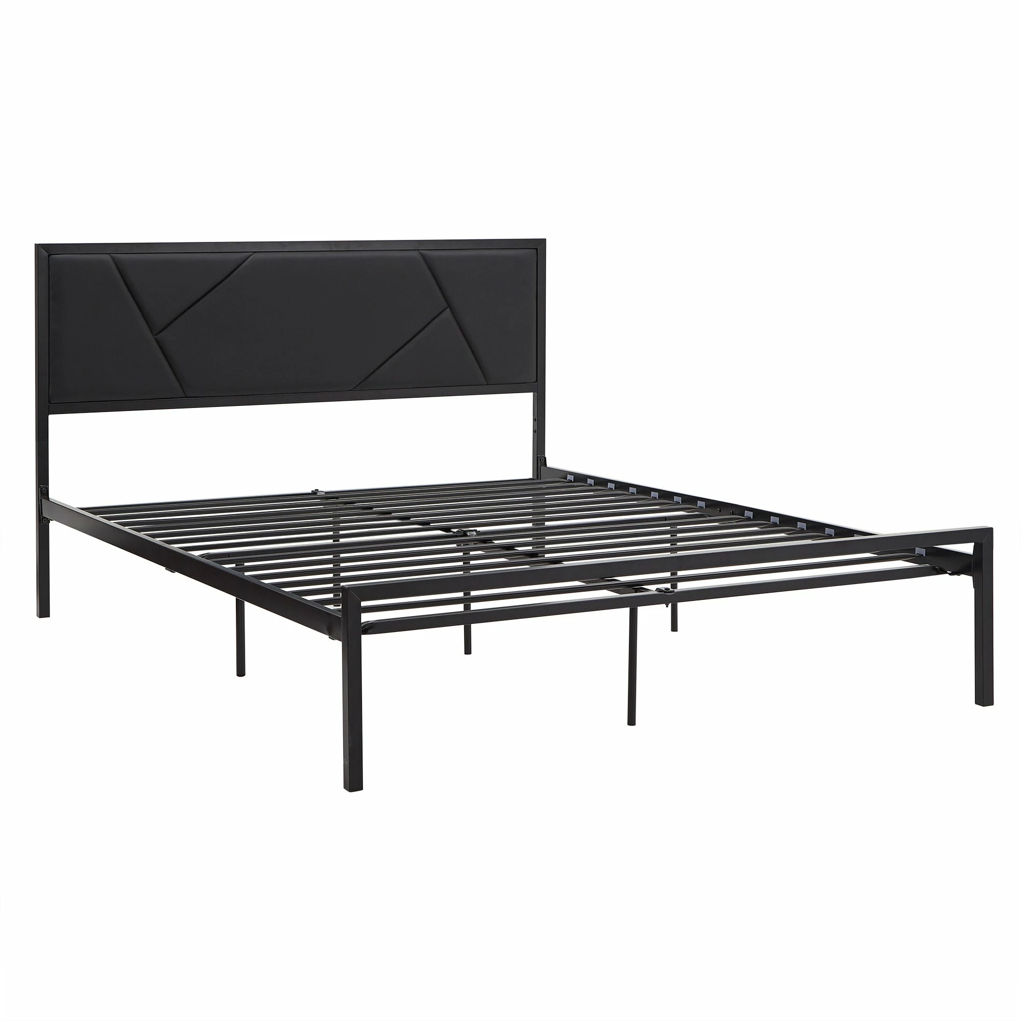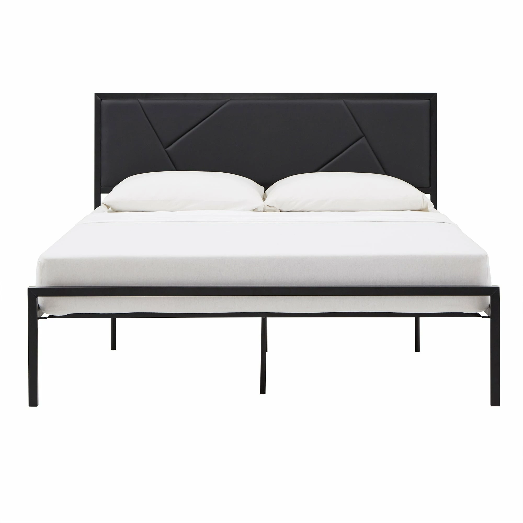 This Metal Platform Bed with Geometric Headboard is the bed your room has been waiting for. It features a streamlined contemporary design that will look great in any space and a sturdily crafted iron frame for durability. The headboard is made of PVC with foam padding for comfort and to help you drift off to dreamland. All you need to do is lay your mattress on top of the sturdy metal slatted frame, and you’re good to go!