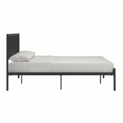 - Sturdy metal bed frame is durable and attractive, with a simple yet confident look. It supports mattresses without sacrificing stability.