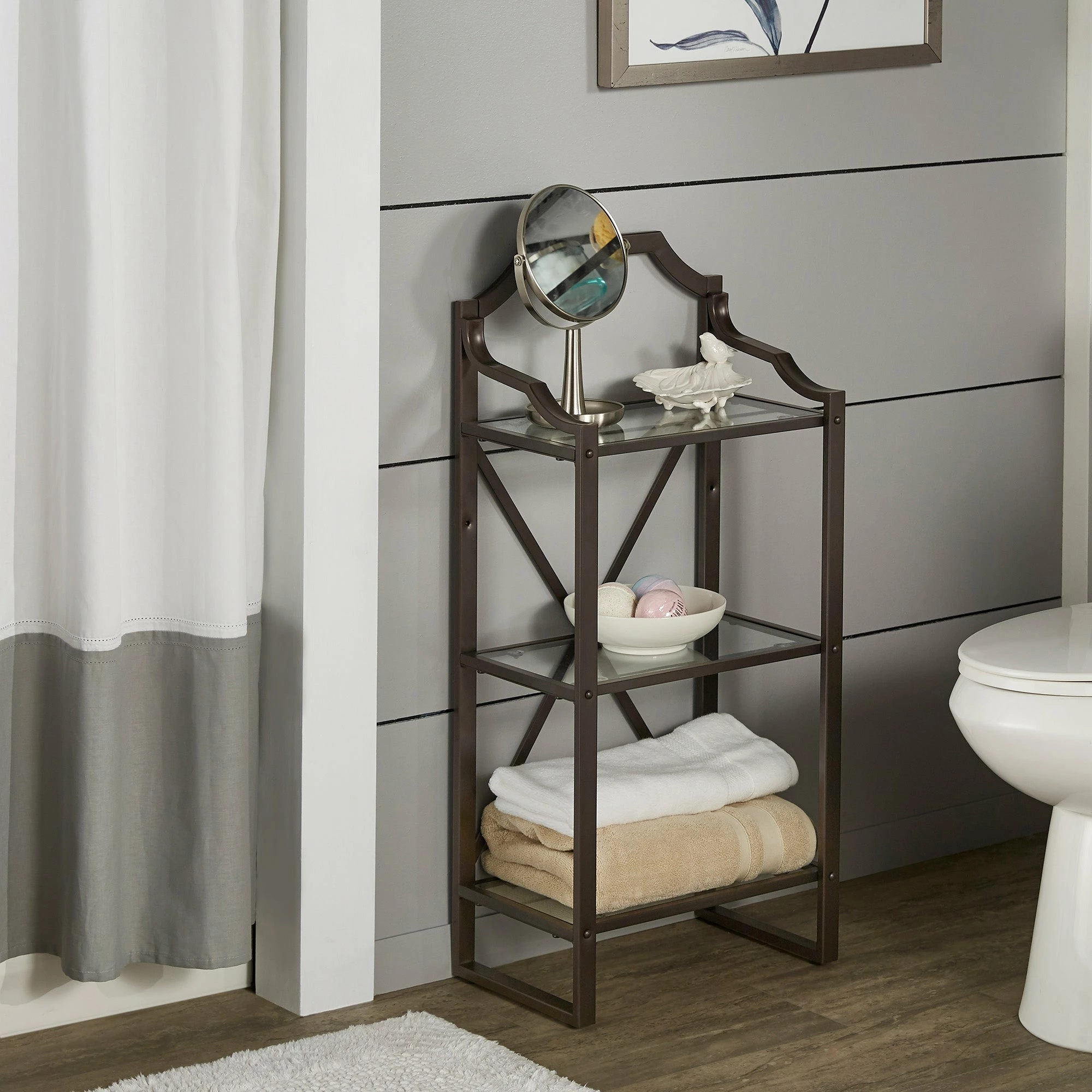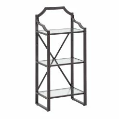 Make the most of your bathroom space with the Bryony Glass and Metal Bathroom Shelves by iNSPIRE Q Classic. These shelves are designed to accommodate all spaces to offer you convenient, open storage. Each shelf is crafted with clear, tempered glass and offers plenty of room to store bath essentials. The shelves are supported by a bronze-finished metal frame that is both timeless and durable.