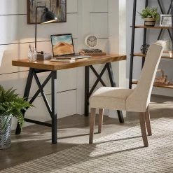 Create a reliable and stylish workspace with the Bryson Rustic X-Base Desk from iNSPIRE Q Classic. A black, powder-coated, X-cross metal frame provides sturdy support and an industrial vibe. The wood surface delivers ample space to set up a computer and a desk lamp. Perfect for any traditional or loft-inspired space, this desk comes in several distressed finishes to best suit your space.