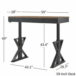 - Dimensions (overall): 59 inches wide x 29.7 inches deep x 29.3-49 inches high