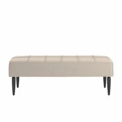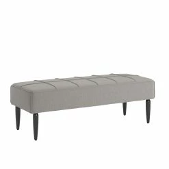 Accent your home with the Cassian Black Finish Linen Upholstered Bench by iNSPIRE Q Modern. Serving as the perfect spot to pull on shoes, the seat of this chic piece features soft linen fabric for comfort and upholstery piping for visual interest. Sturdy, black-finished tapered legs provide a reliable foundation for this contemporary piece, making it easy to match with existing color schemes.