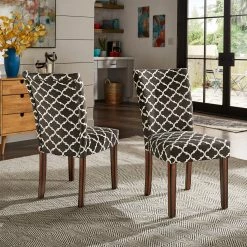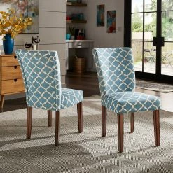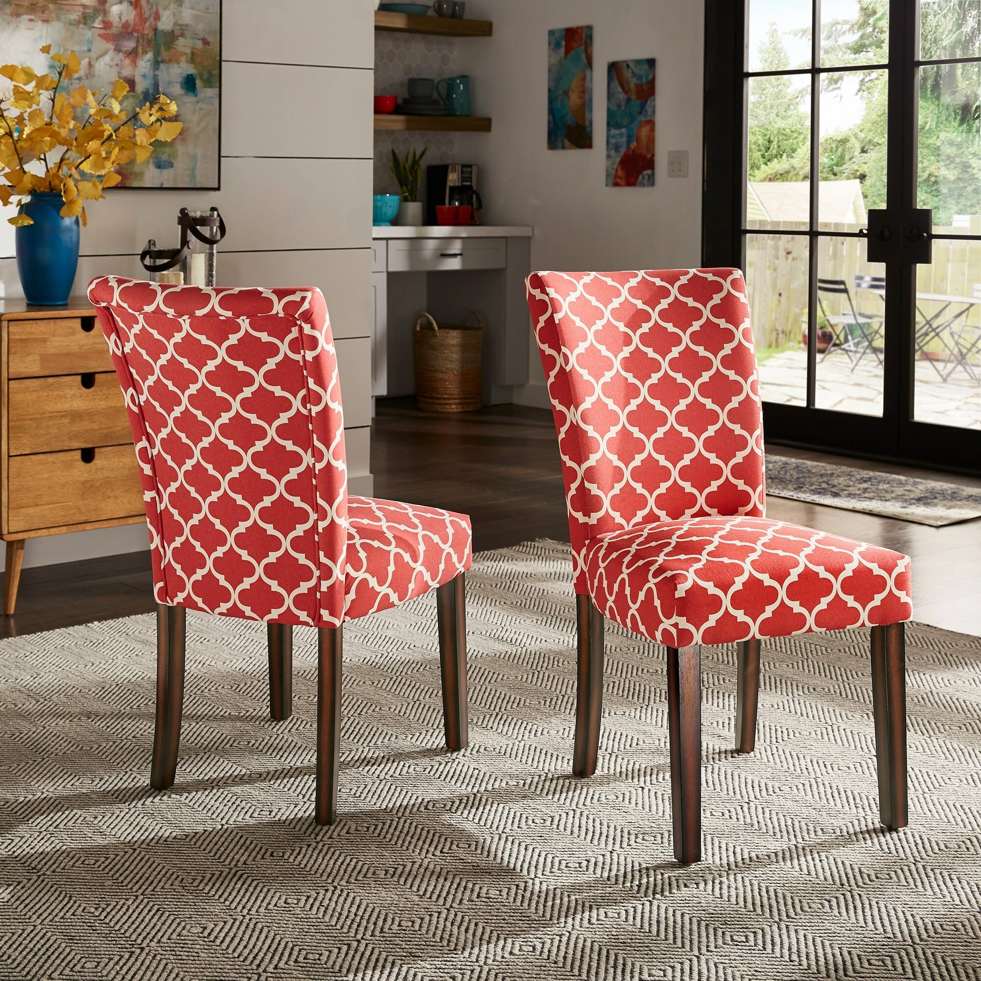 Bold, vivid color and an eye-catching Moroccan trellis pattern set these chairs apart. Lend the timeless grace of elegant design to your home along with luxurious style and durable construction with this set of accent chairs.