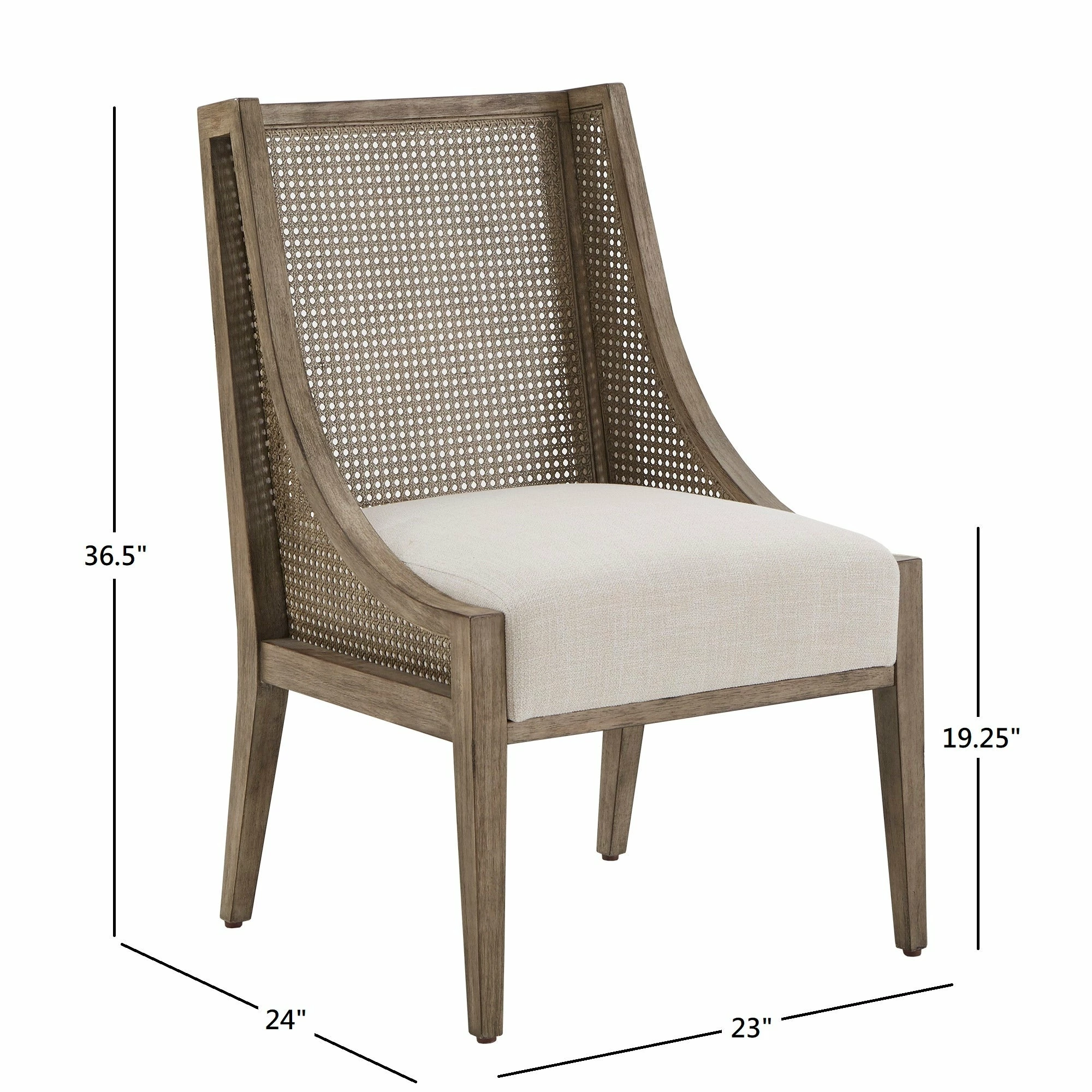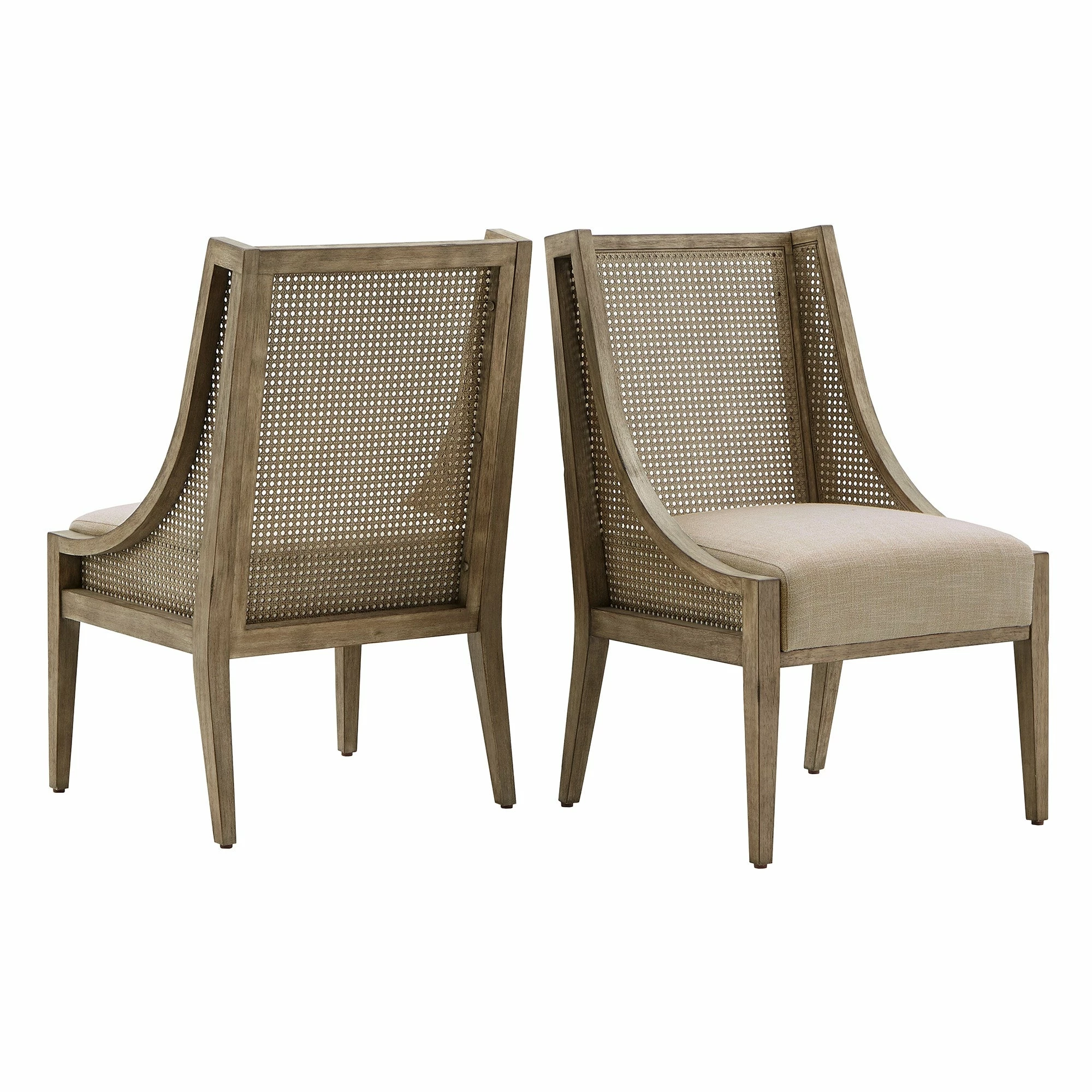 Create a warm and inviting vibe in your home with the Celann Antique Grey Oak Cane Accent Chairs (Set of 2) by iNSPIRE Q Modern. This charming piece has a bohemian look to it with its rattan construction, antique grey oak wood grain finish, and soft beige fabric upholstery. The plush, foam-filled seat offers lasting comfort while the wooden construction ensures ample support and durability.