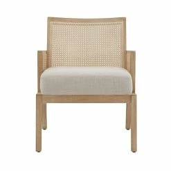 Create a warm and inviting vibe in your home with the Celann Natural Finish Fabric Cane Accent Chair by iNSPIRE Q Modern. This charming piece has a bohemian look to it with its rattan construction, antique natural wood grain finish, and beige fabric. The foam-filled seat cushion and slightly curved backrest offer lasting comfort while the wooden construction ensures ample support and durability.