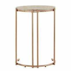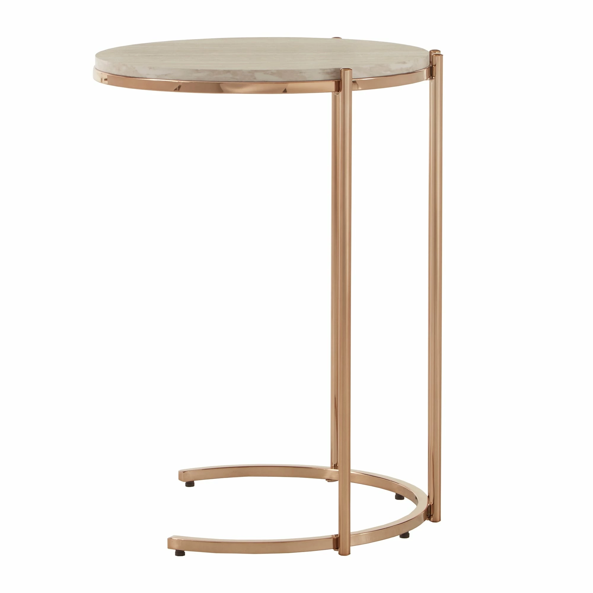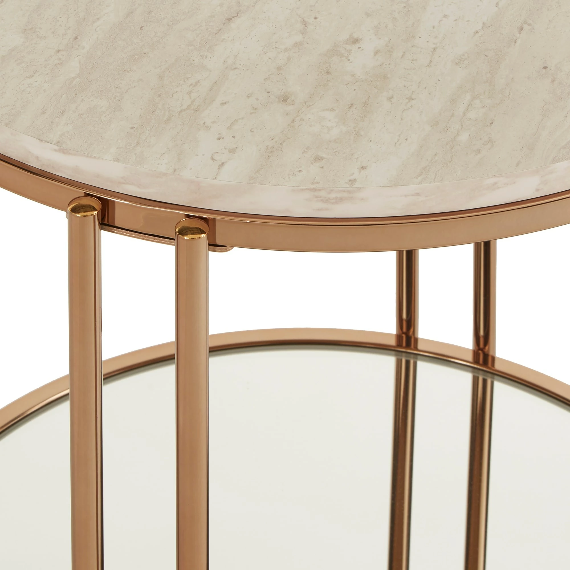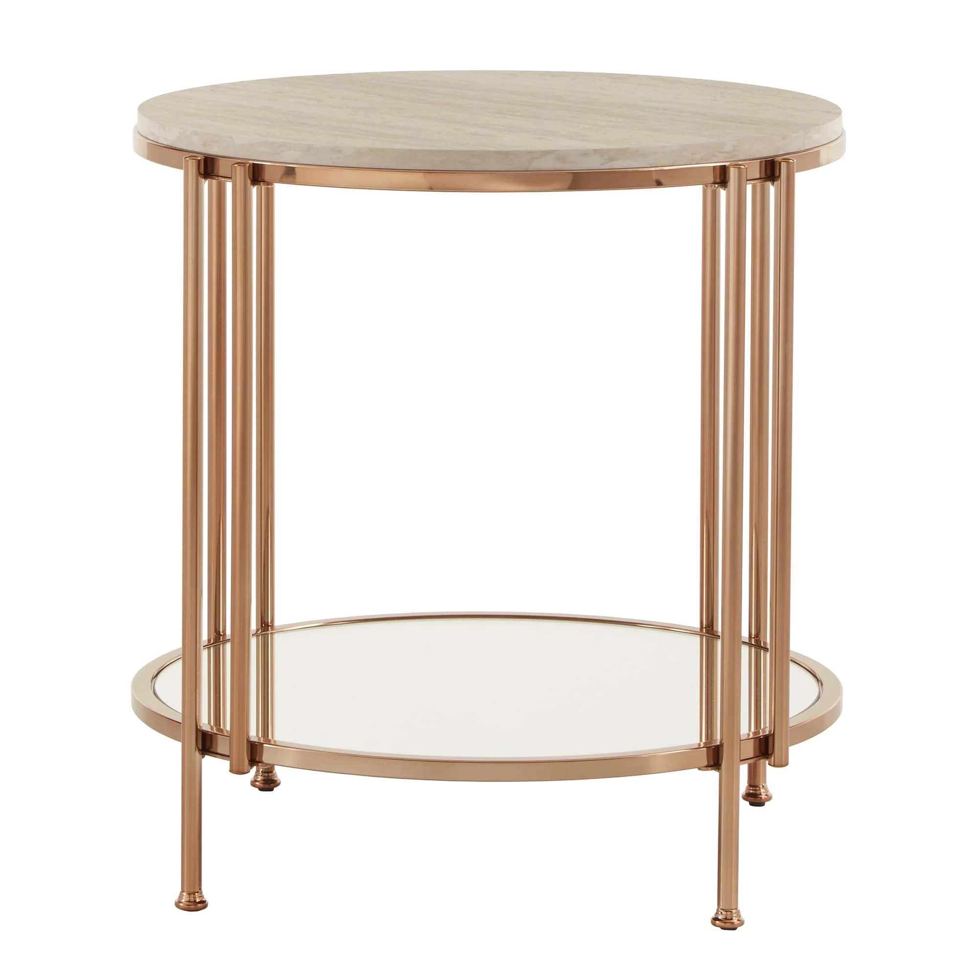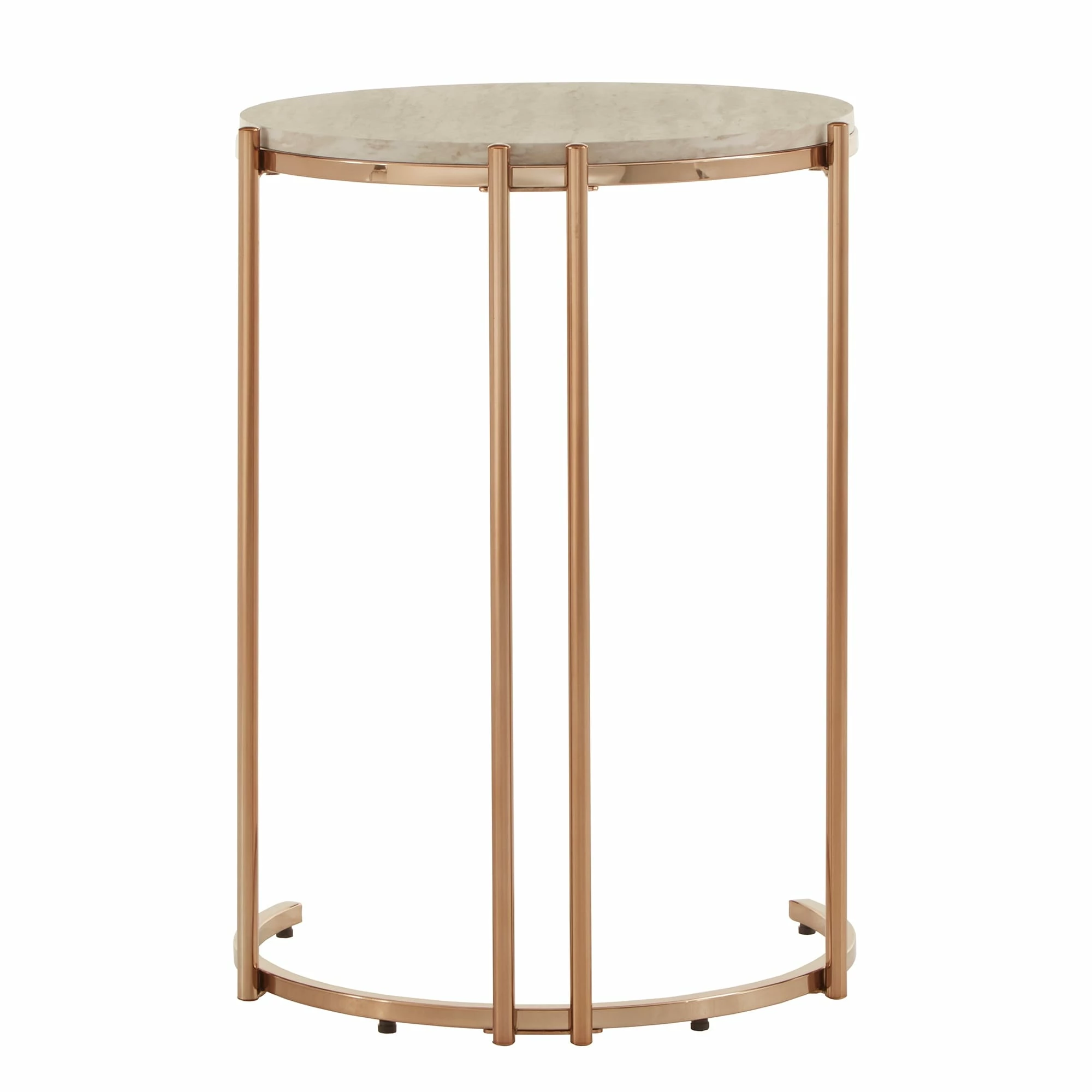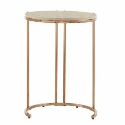 Update the furniture in your home with this nesting table from the Celsus collection. Glitzy style is displayed through the shiny, champagne gold metal frame, while the mirrored bottom shelf provides a beautiful spot to display your favorite home decor items. The white faux marble table top adds unique, contrasting detail.