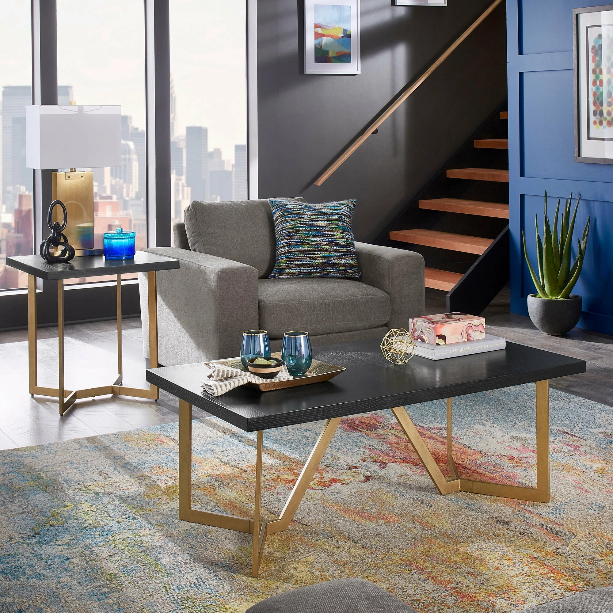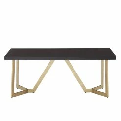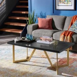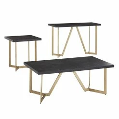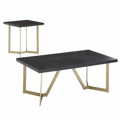 Showcase a new, bold aesthetic in your living room with the Cheyenne Black and Gold Metal Base Table Set from iNSPIRE Q Modern. All pieces of this set had sturdy metal bases that are finished in a shiny golden hue for a pop of glam. The black table tops not only beautifully contrast the gold but also display a diamond-like inlay wooden design, adding the perfect touch of rustic and elegance. Sure to be a show-stopper in any home, these tables work especially well with modern or glam-inspired styles. Choose from multiple set options to best suit your living room needs and design tastes.