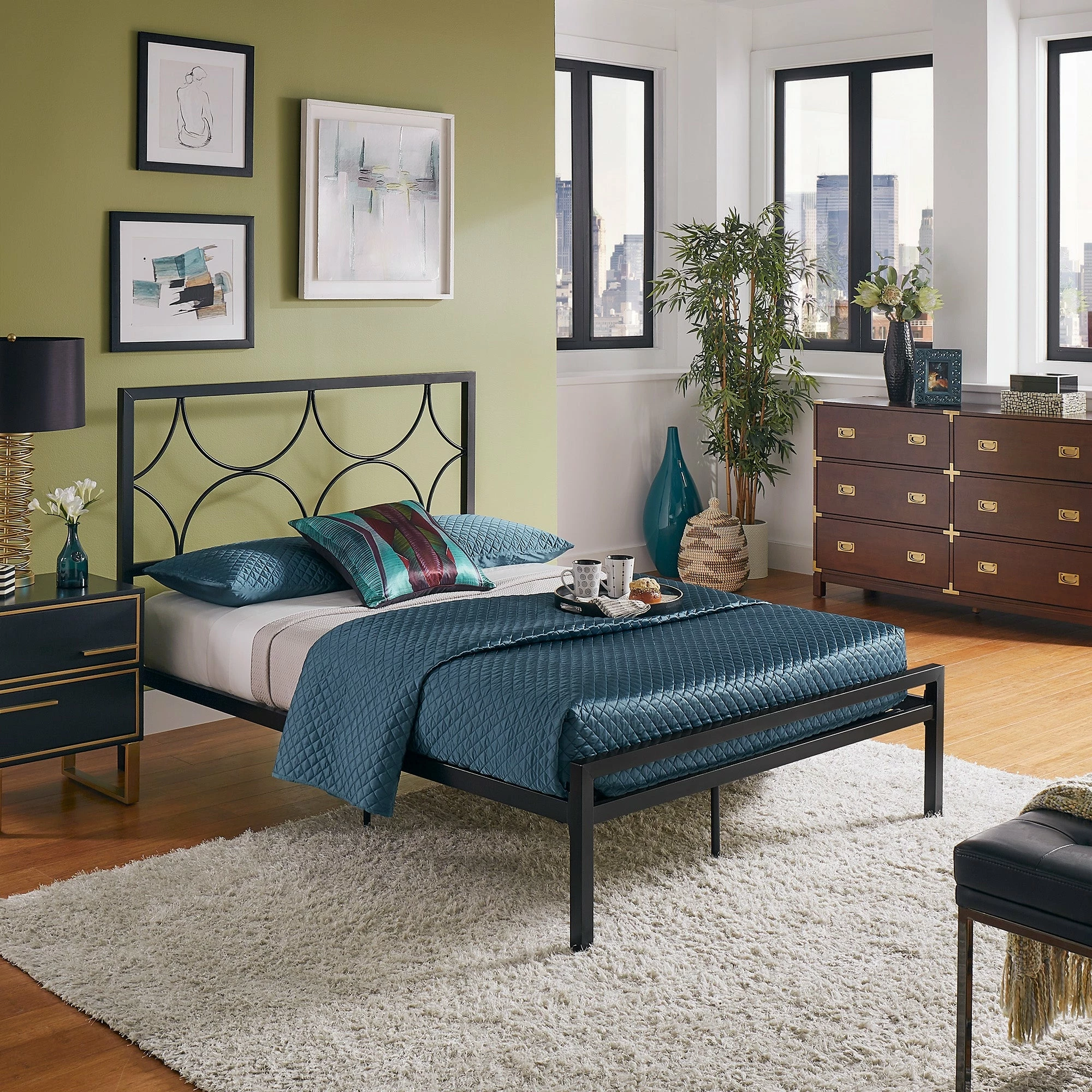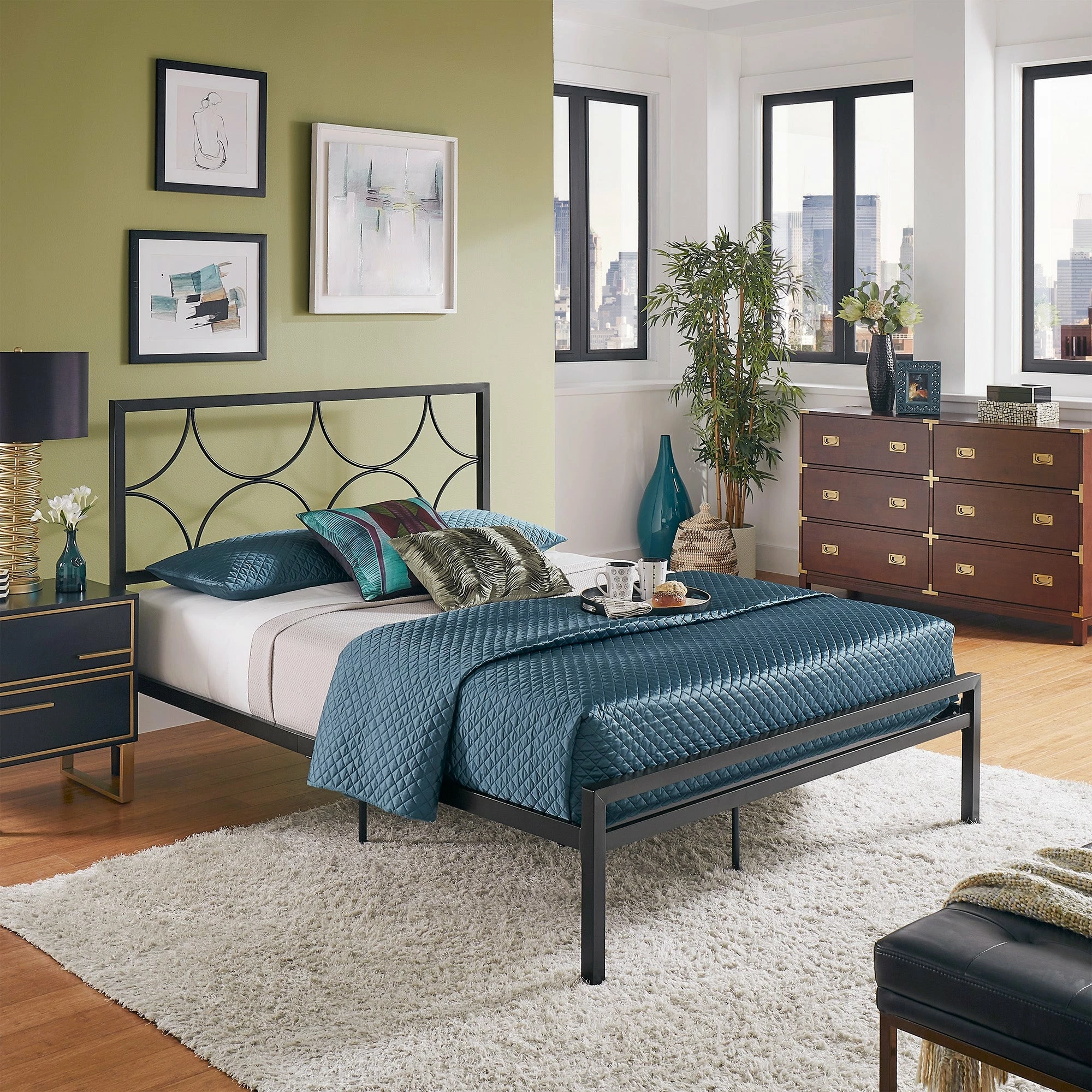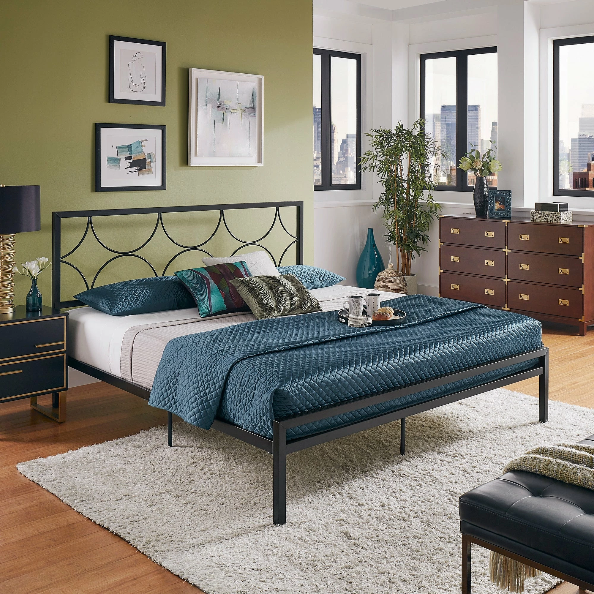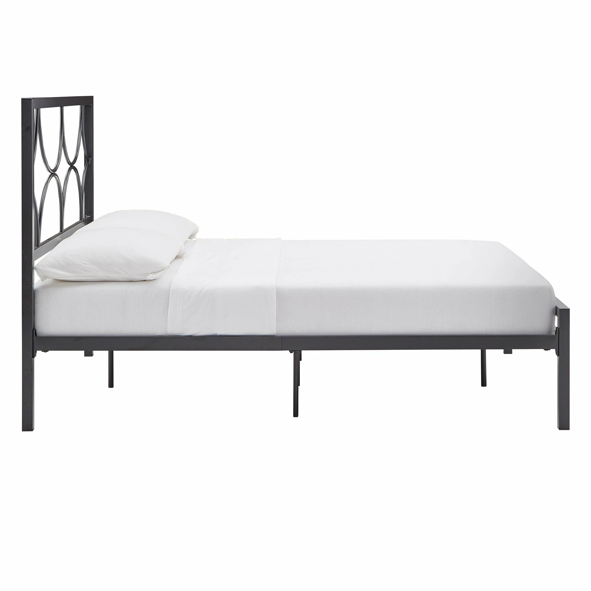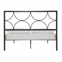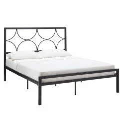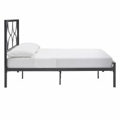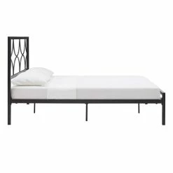 This Metal Platform Bed with Twinkling Star Headboard is the bed your room has been waiting for. It features a streamlined contemporary design that will look great in any space and a sturdily crafted iron frame for durability. The headboard has patterns like twinkling stars to help you drift off to dreamland. All you need to do is lay your mattress on top of the sturdy metal slatted frame, and you’re good to go!