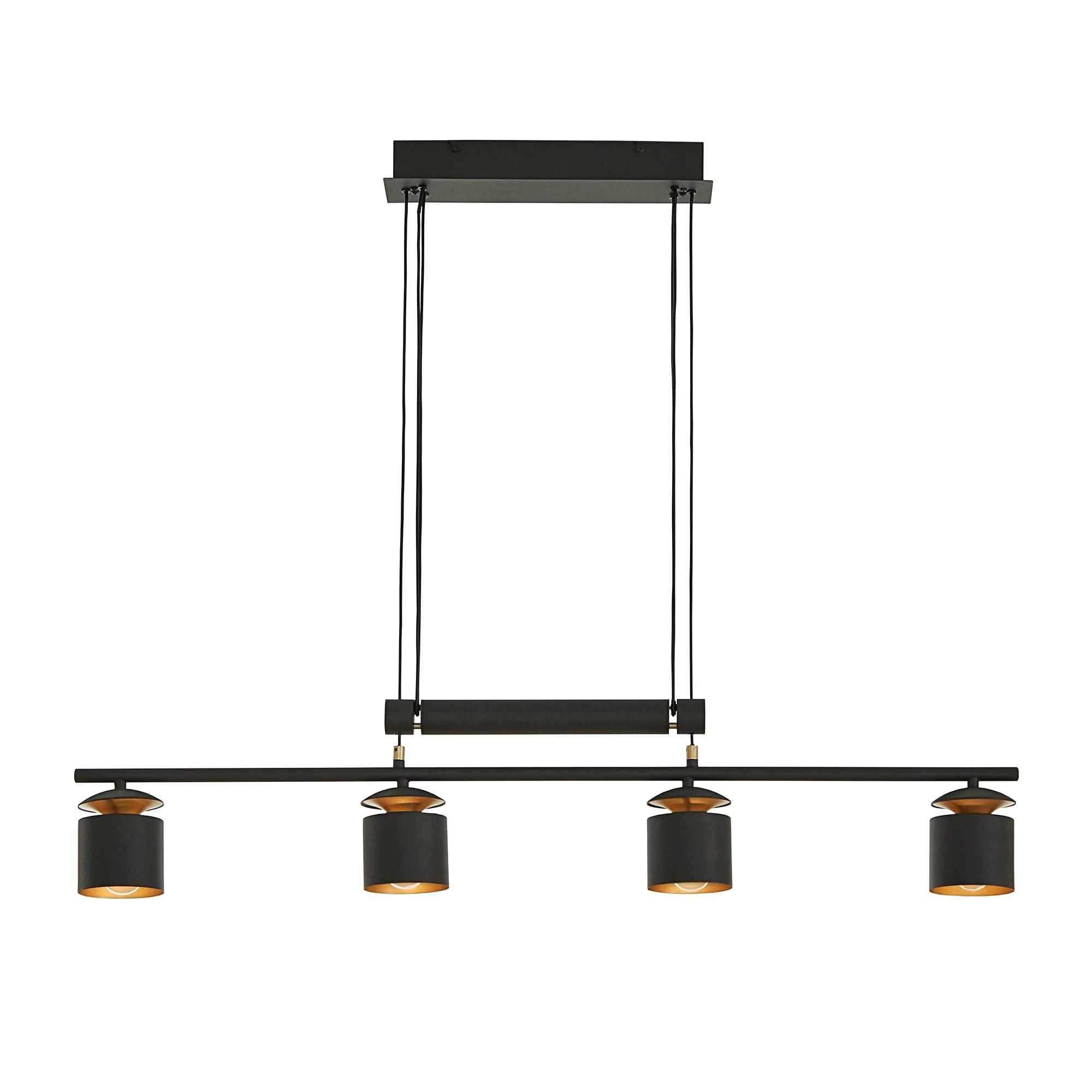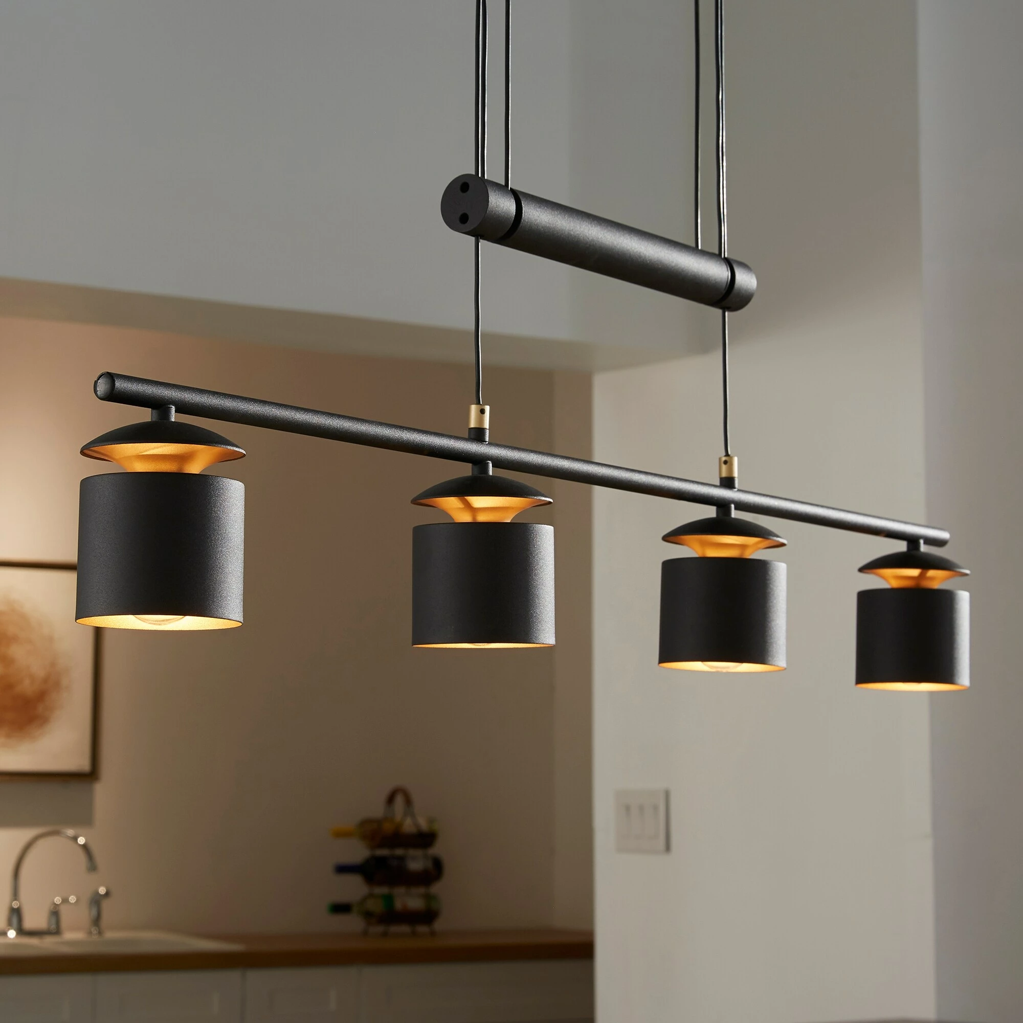 Displaying a chic presence in your dining or living space, the iNSPIRE Q Matte Black Finish Modern 4-Cylinder Pendant Light is the perfect finishing touch to a contemporary interior setting. This pendant light features a system for adjusting the height of the light. Crafted of matte black finish to create modern vintage look that works well with a variety of decor styles.