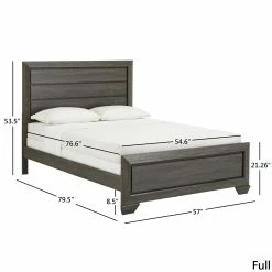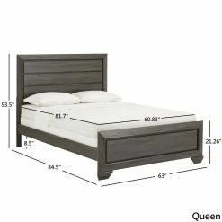 A bed can be considered of the most important pieces of furniture you can own. Give yourself the support you deserve and show off a transitional style with the Corbett Grey Wood Panel Bed from iNSPIRE Q Classic. Crafted from strong solid wood, this bed has sharp, rectangular edges that are softened by the smoky finish. Low-profile side rails and footboard give a polished look. These, along with the four durable slats, keep the box spring of your choice stable and secure so you can get a good night’s rest.