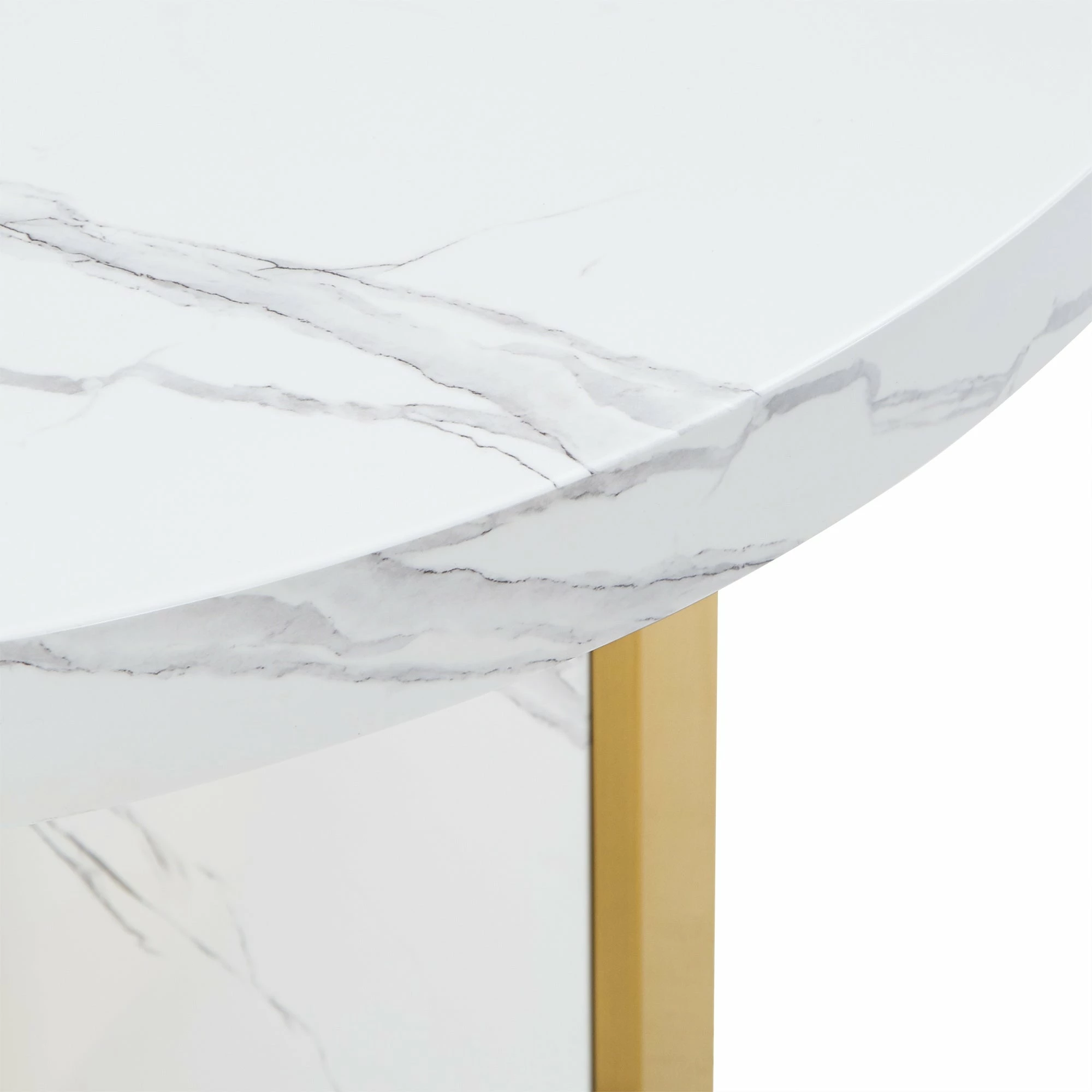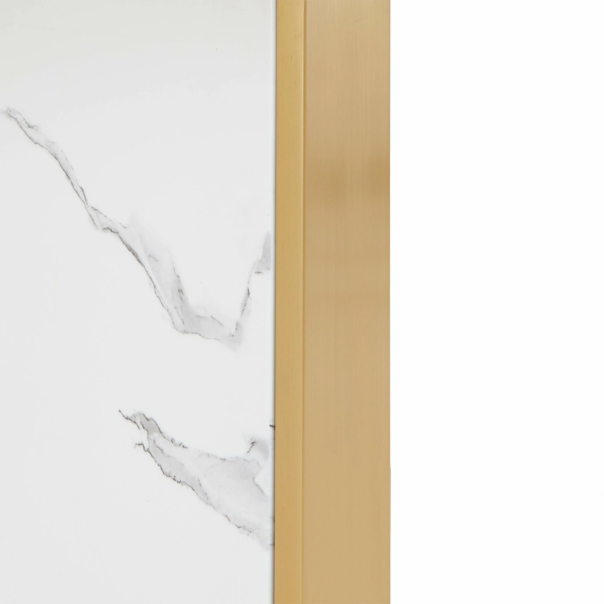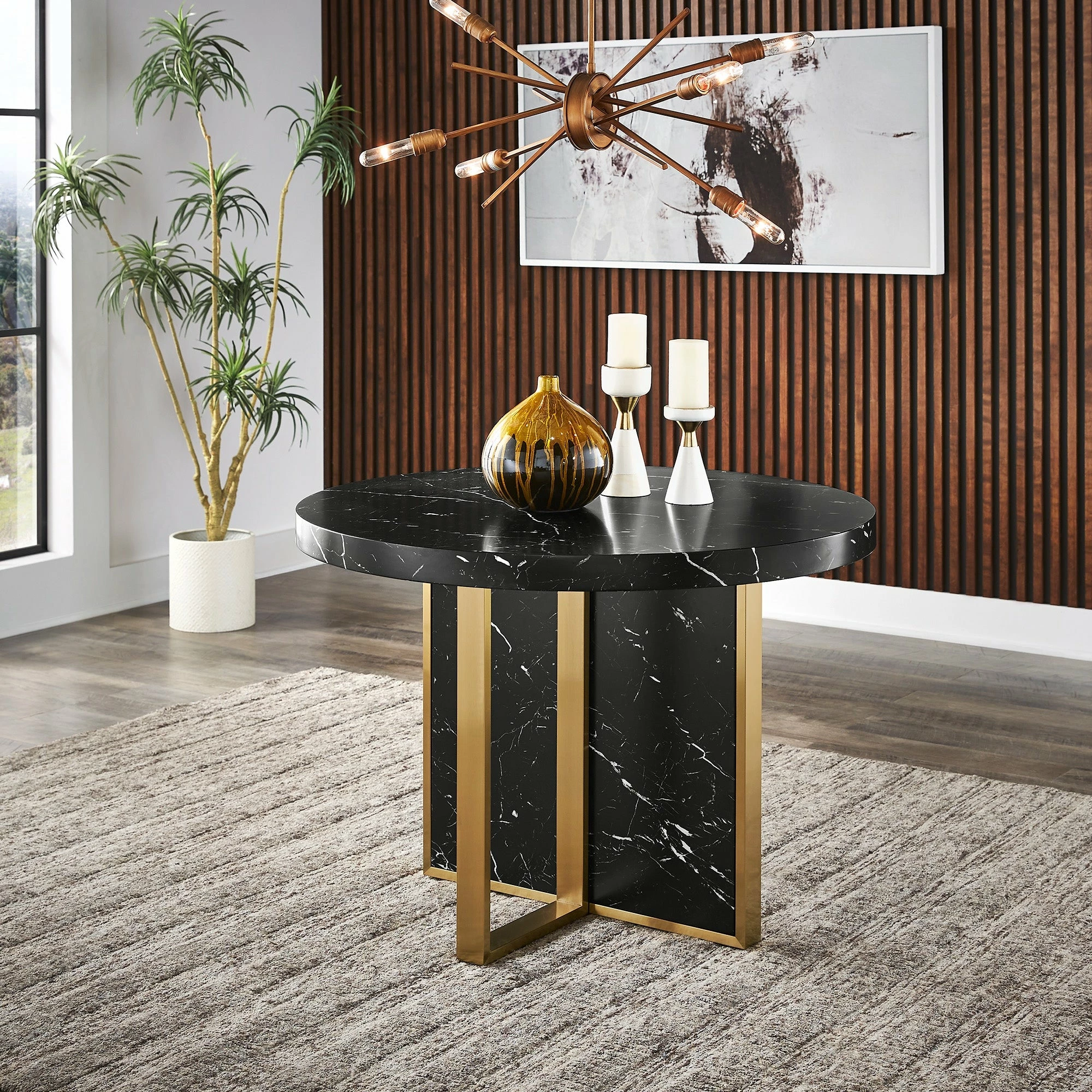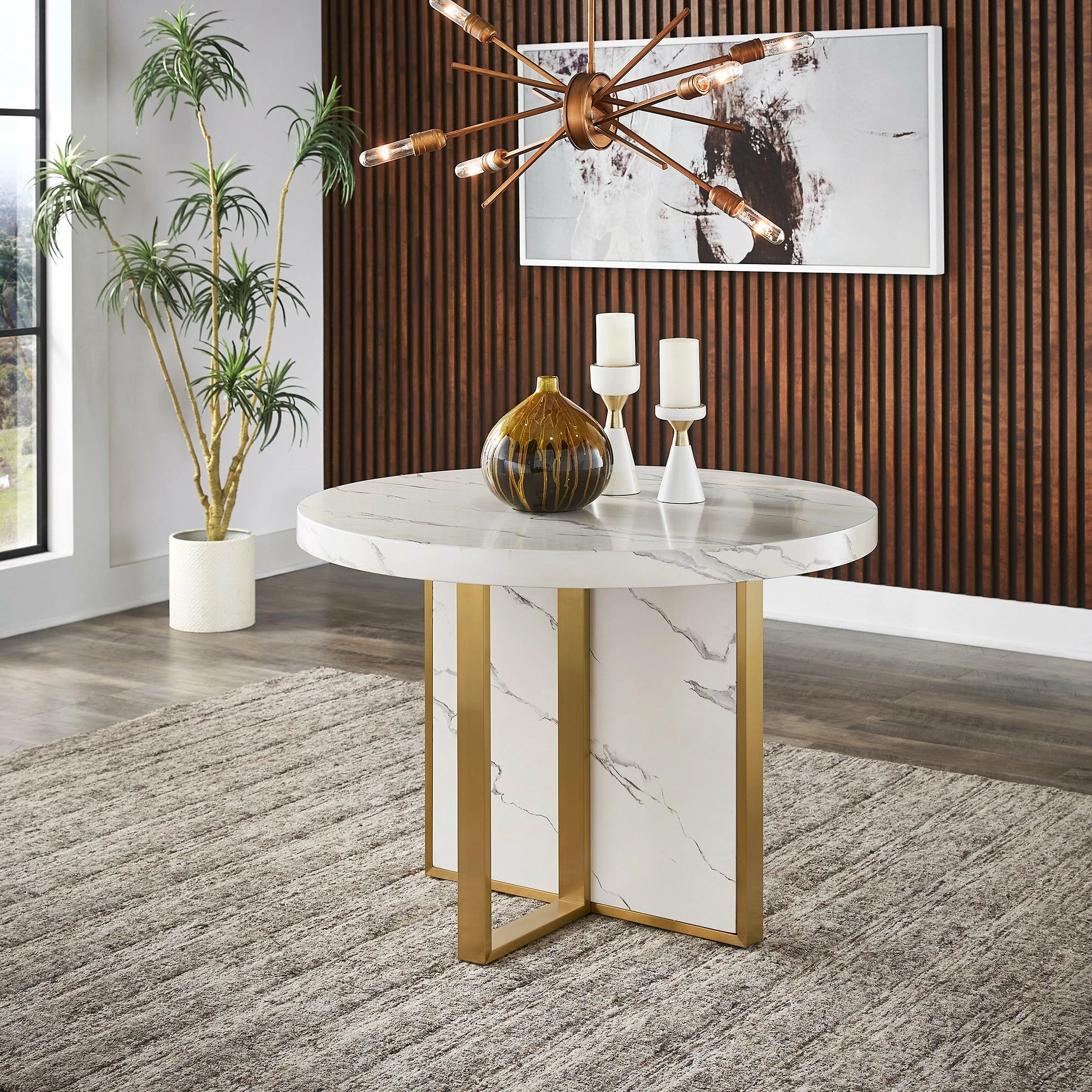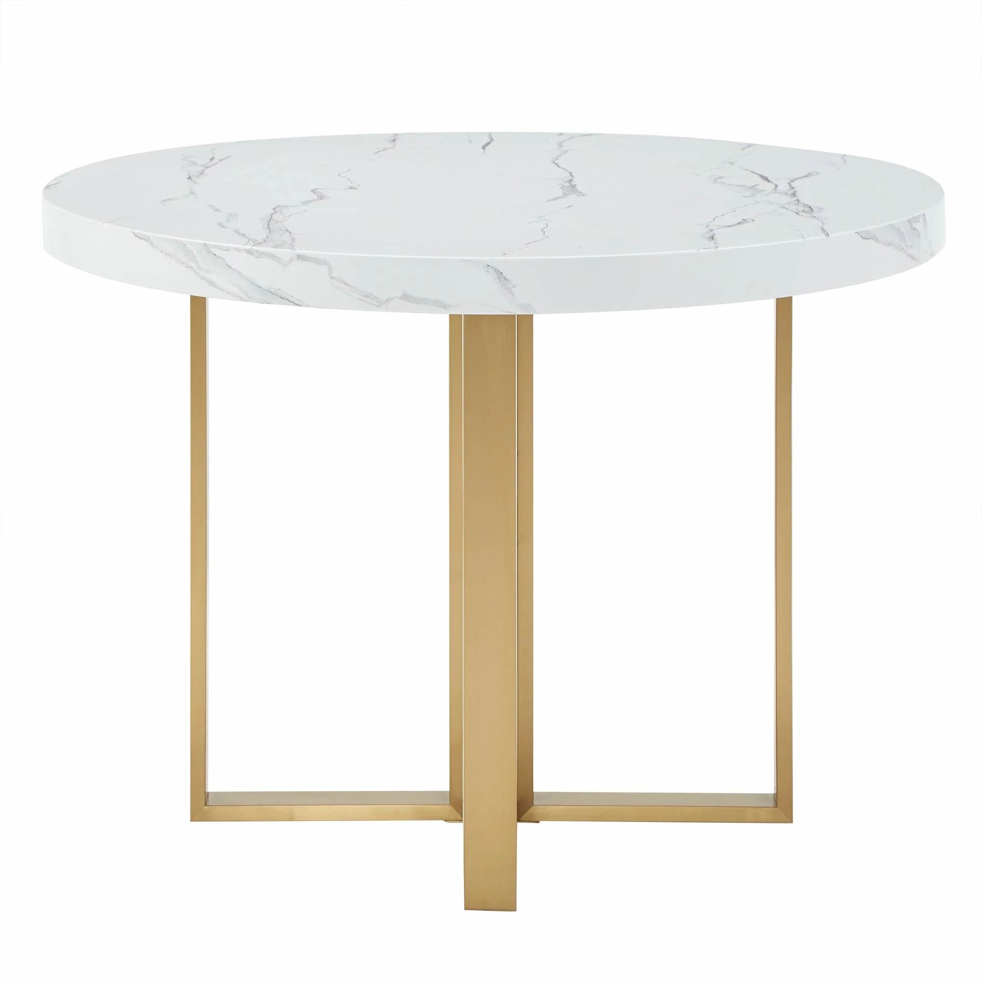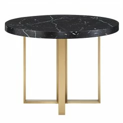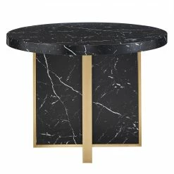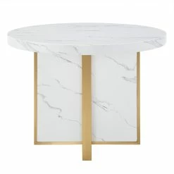 This luxury 43″ Wide Faux Marble Round Dining Table is perfect for those who want to add a touch of refinement and elegance to their space. With its beautiful faux marble tabletop and brushed gold finish stainless steel frame, this table is sure to add a touch of luxury and refinement to any room. The faux marble base for extra support and can be admired from any angle. The sturdy metal frame and seats four people, making it perfect for families or groups.