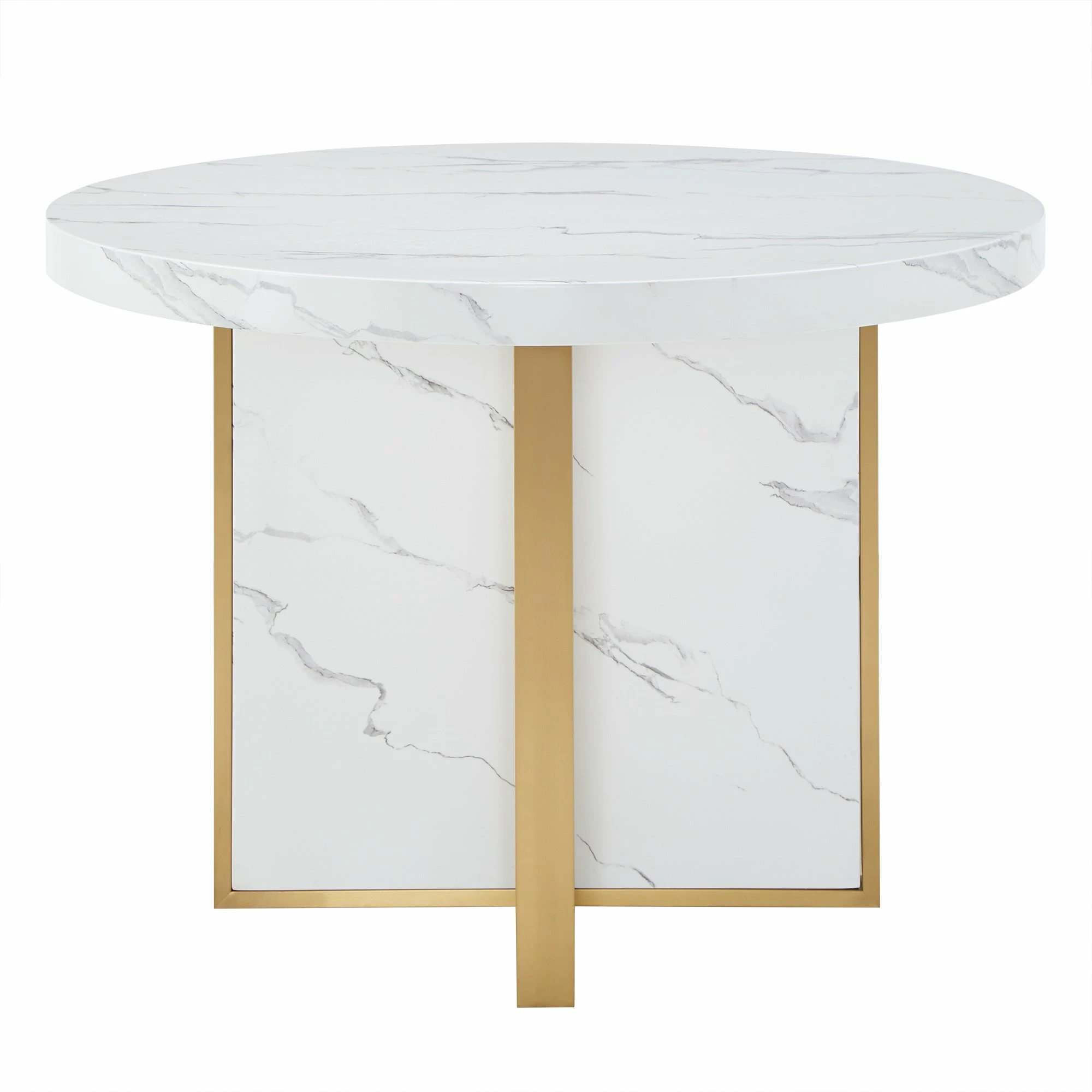 - This beautiful 43″ Wide Faux Marble Round Dining Table is perfect for 4 people