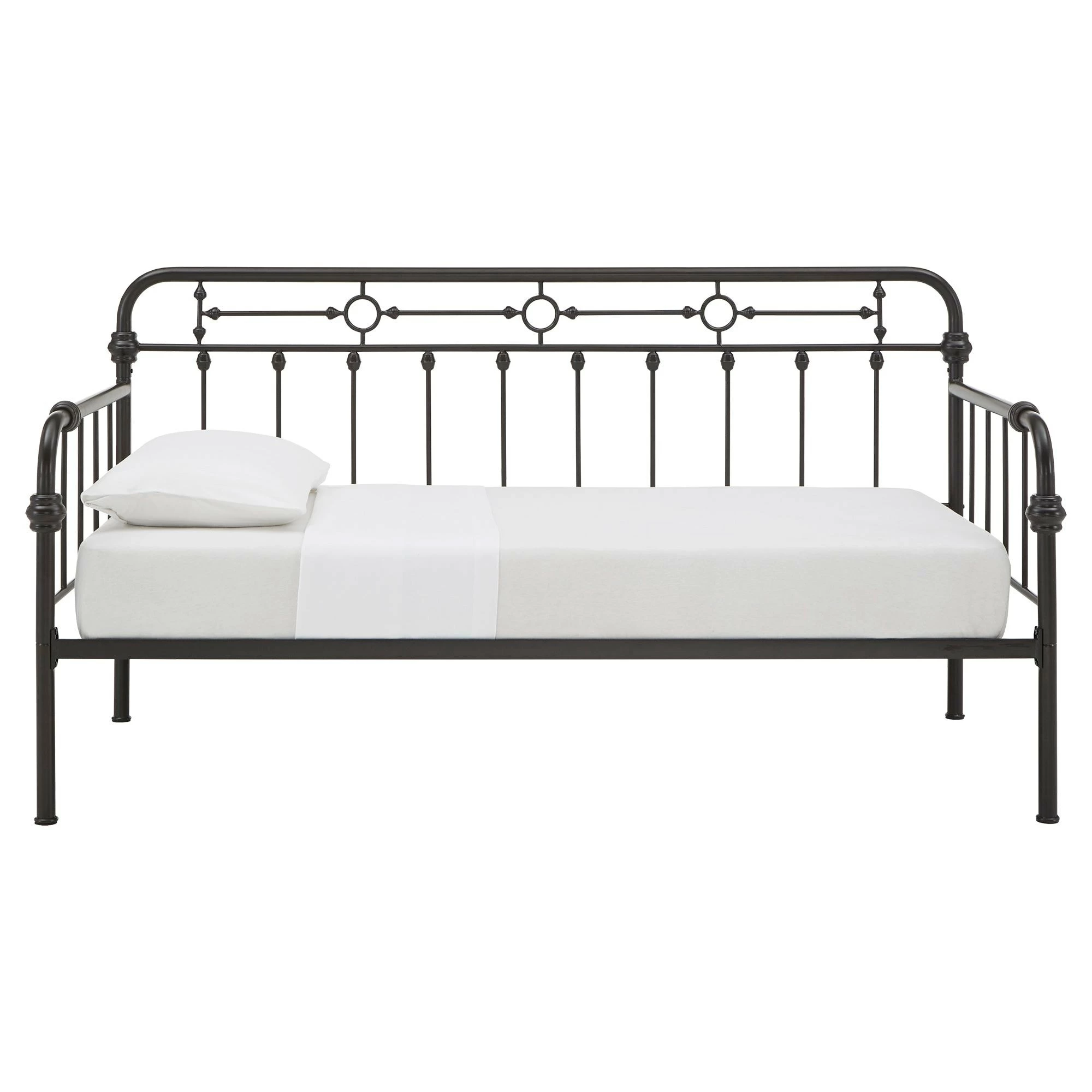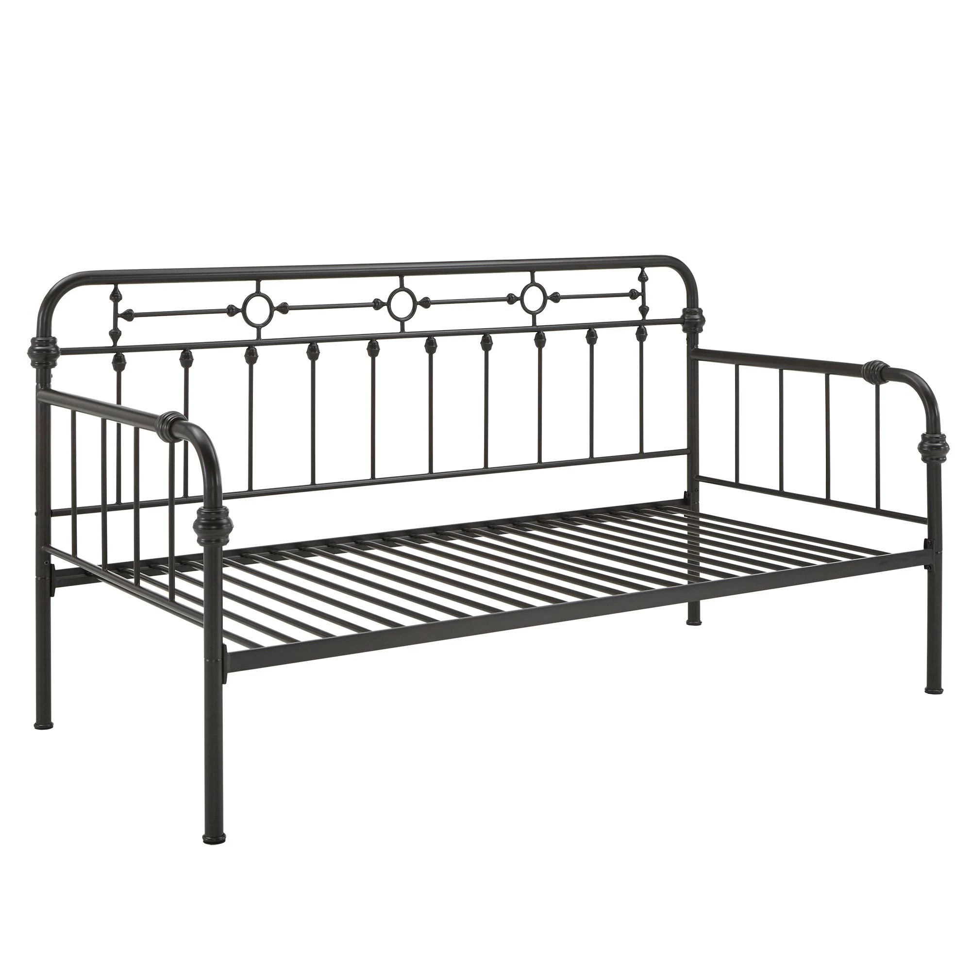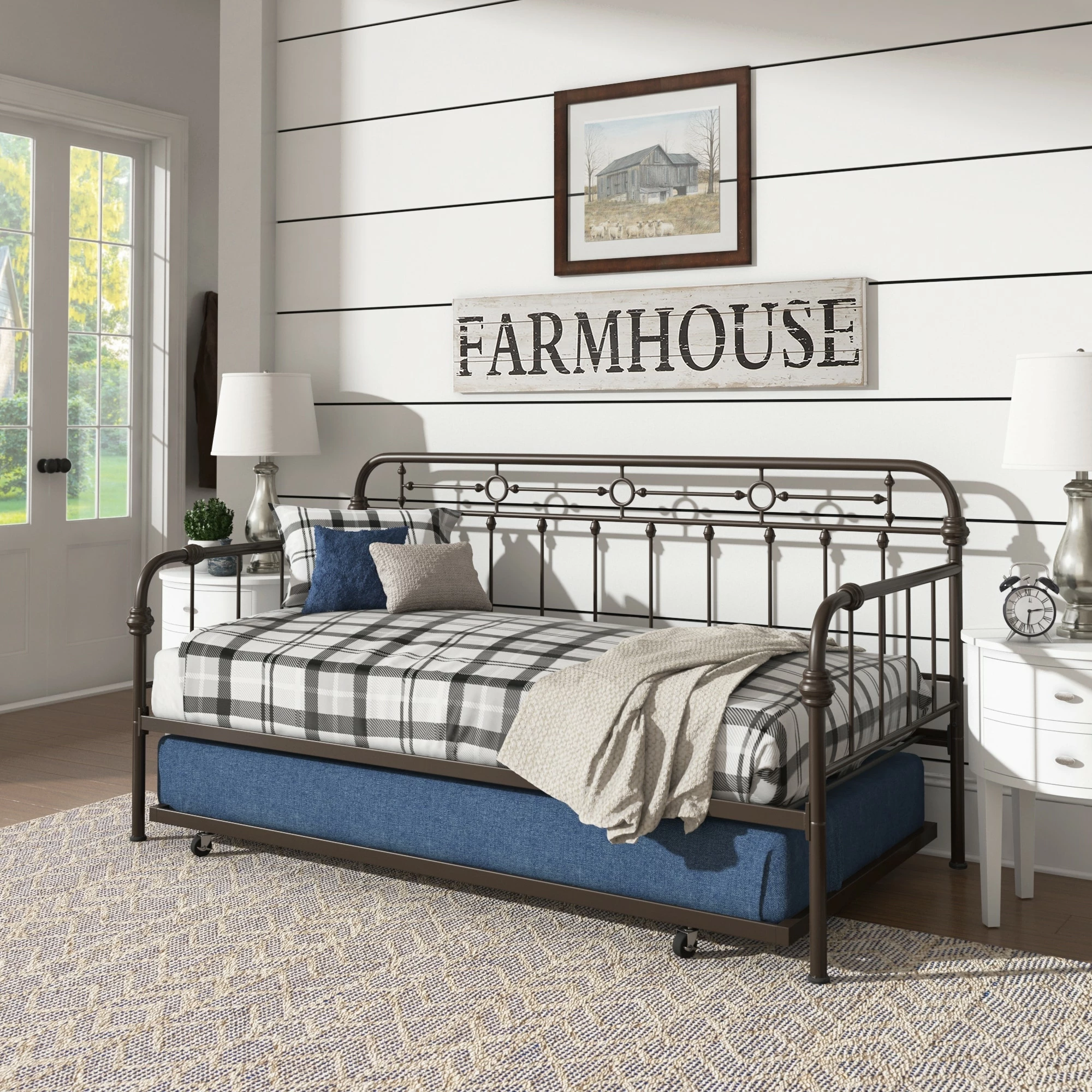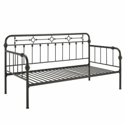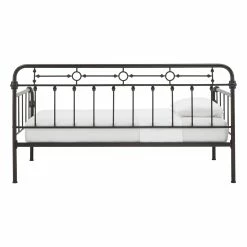 Providing your home with the perfect spot for a midday snooze, the Darren antique bronze metal daybed is both styled and multifunctional. This beds frame features classic curves and spindle detailing, while decorative metal accenting adds to the piece’s traditional charm. This daybed’s open and inviting design provides your living room with a place to lounge throughout the day and a spot to sleep at night. The antique dark bronze color pairs perfectly with a farmhouse styled space.